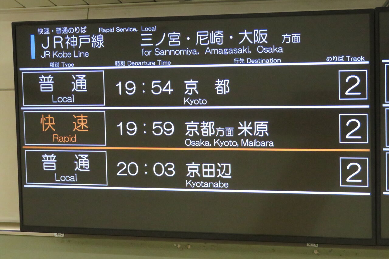 以上、明石駅で撮影した普通 「京田辺行き」 を紹介しました。