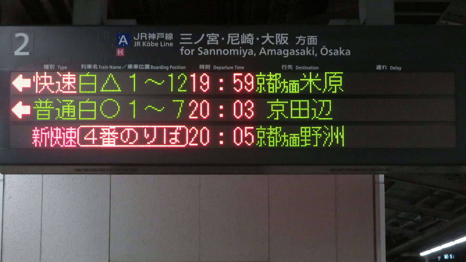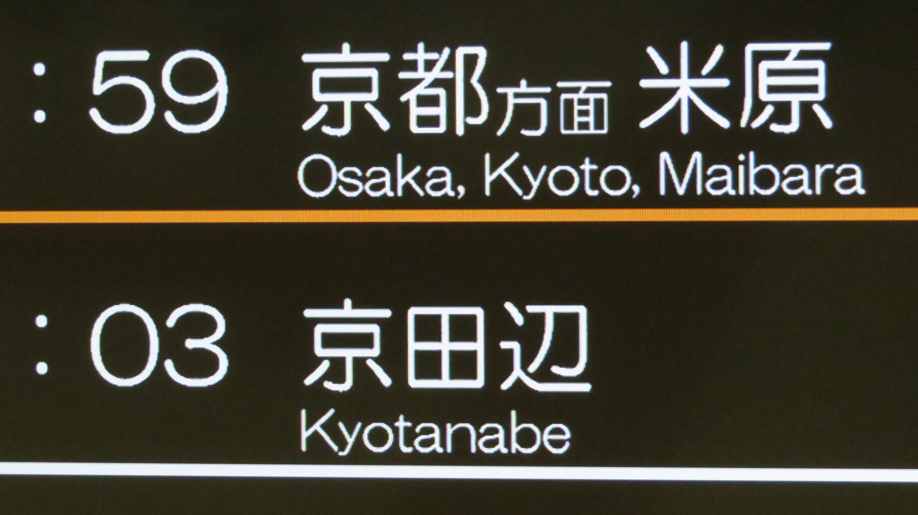 一番下の段に、20時3分発の普通 京田辺行きが表示されました。