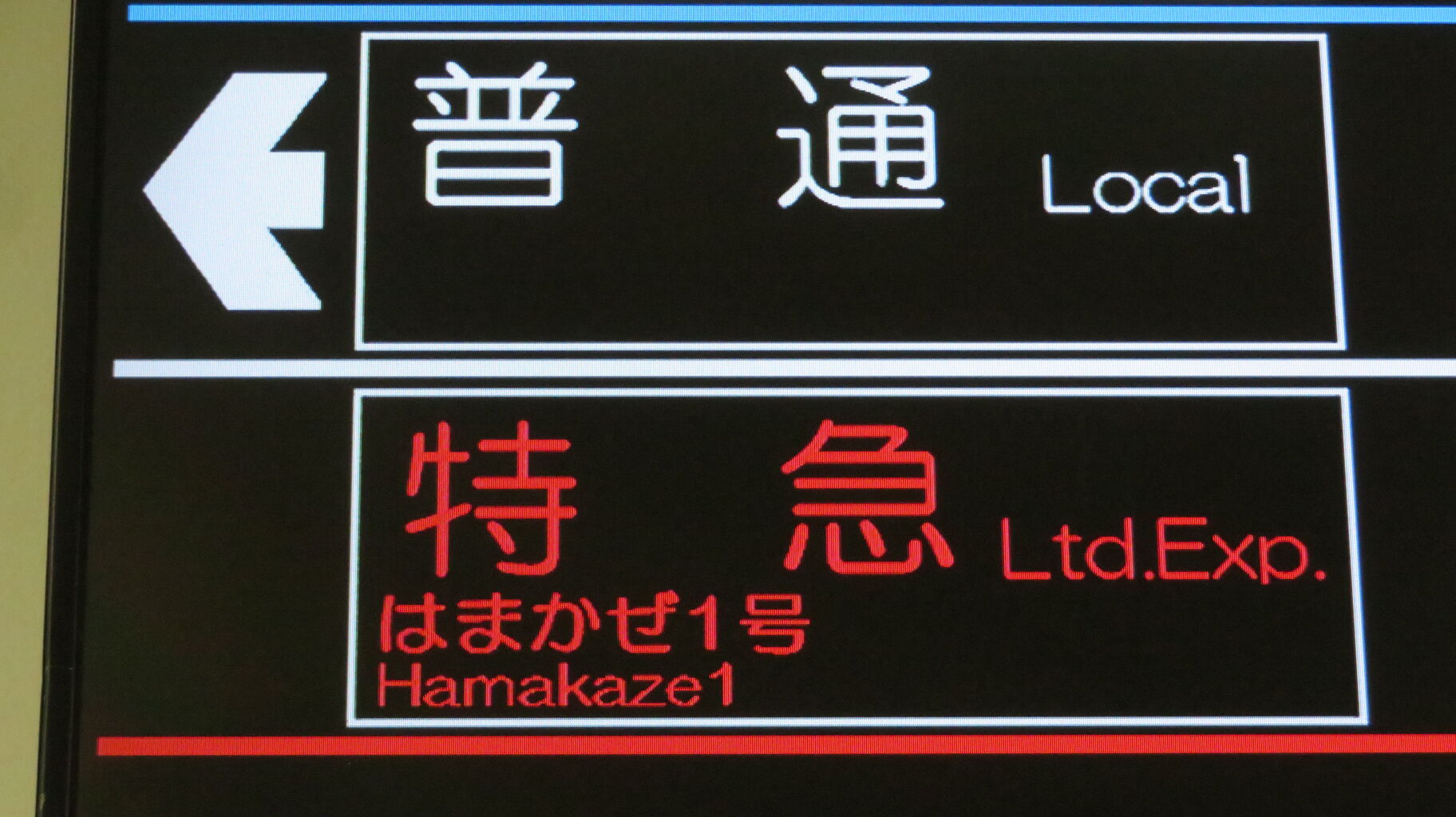 列車名は、「特急はまかぜ」 とスクロール表示されます。