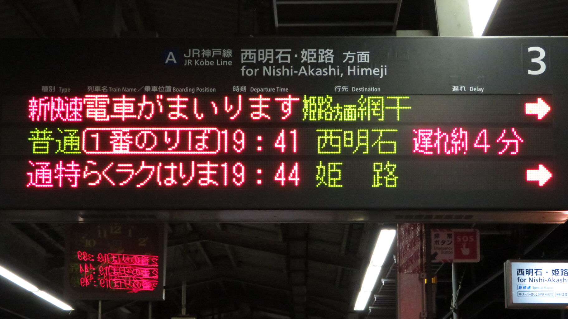 3番のりばへ行ってみると、3色LEDの発車標に らくラクはりまの表示が出ていました!