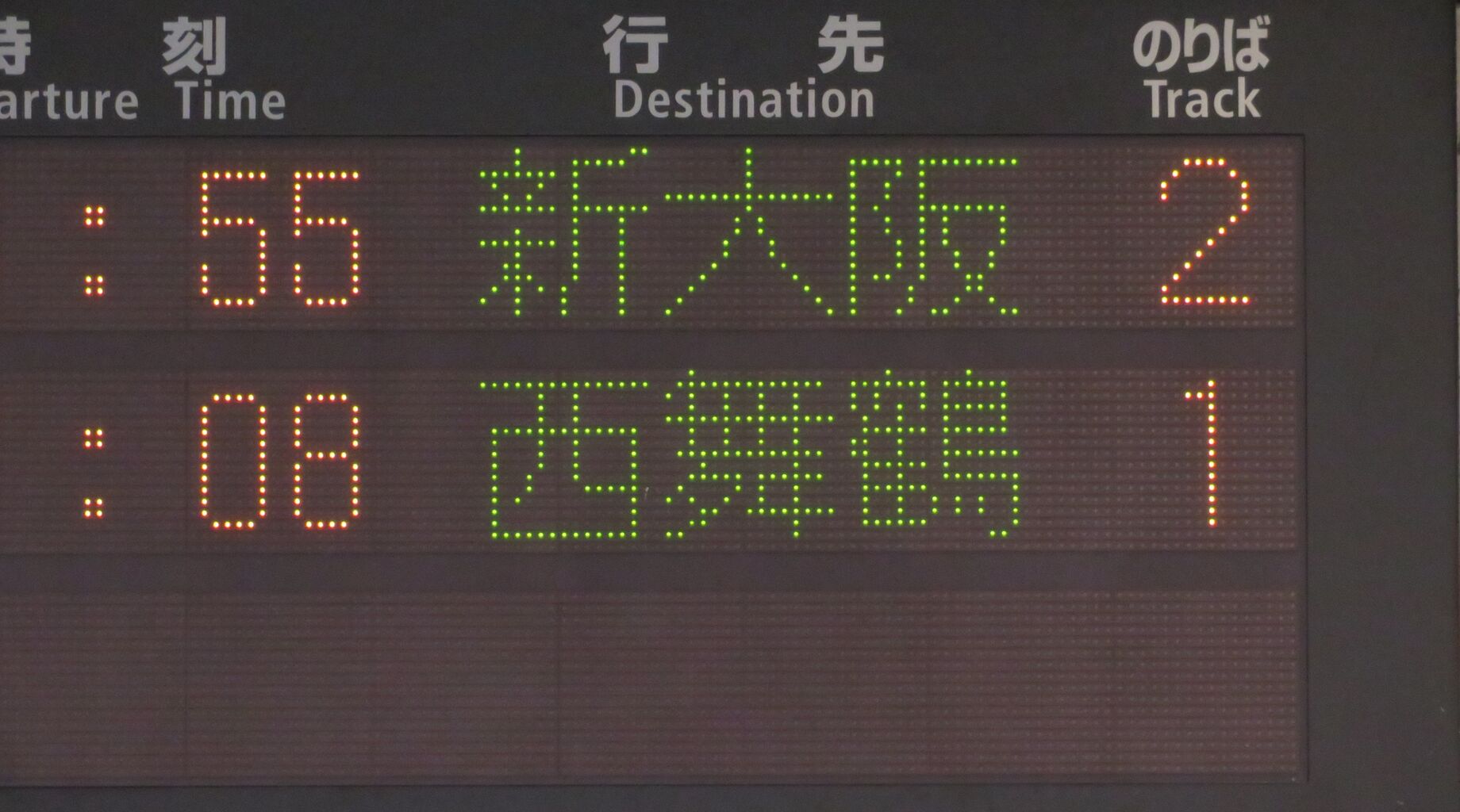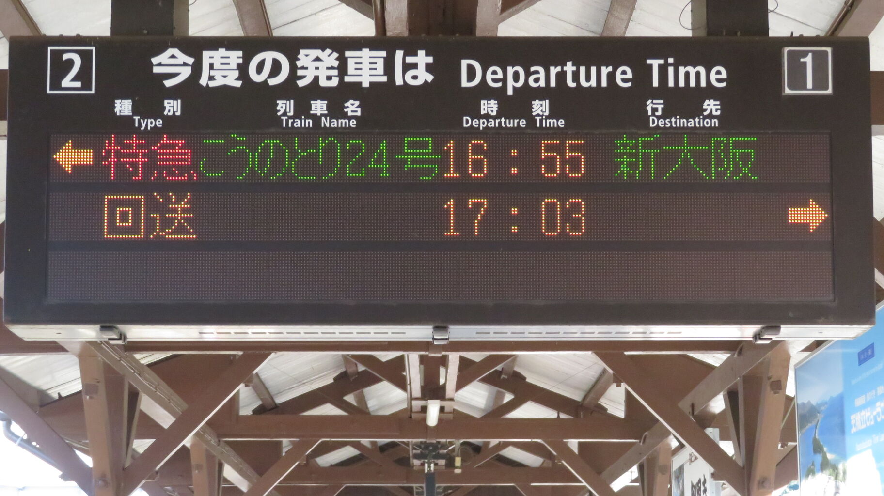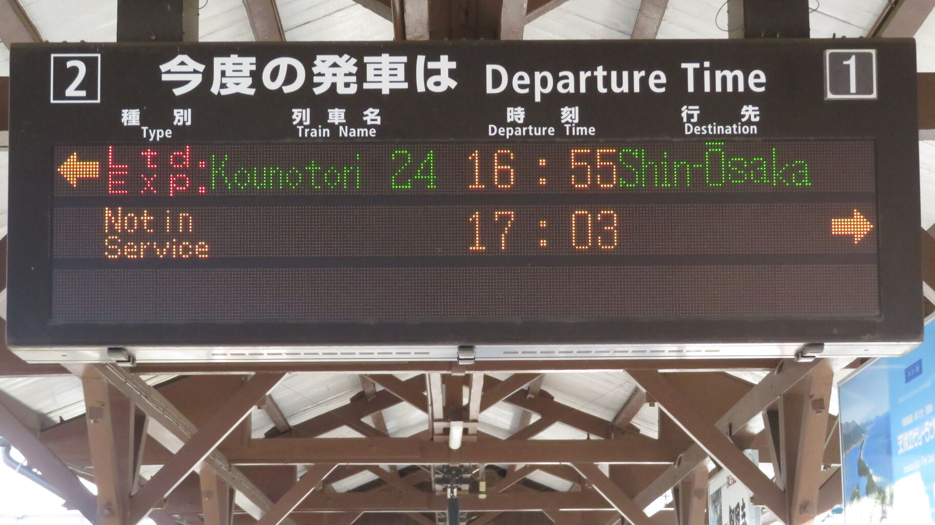一番上の段に、特急こうのとり24号 新大阪行きの表示が出ています。