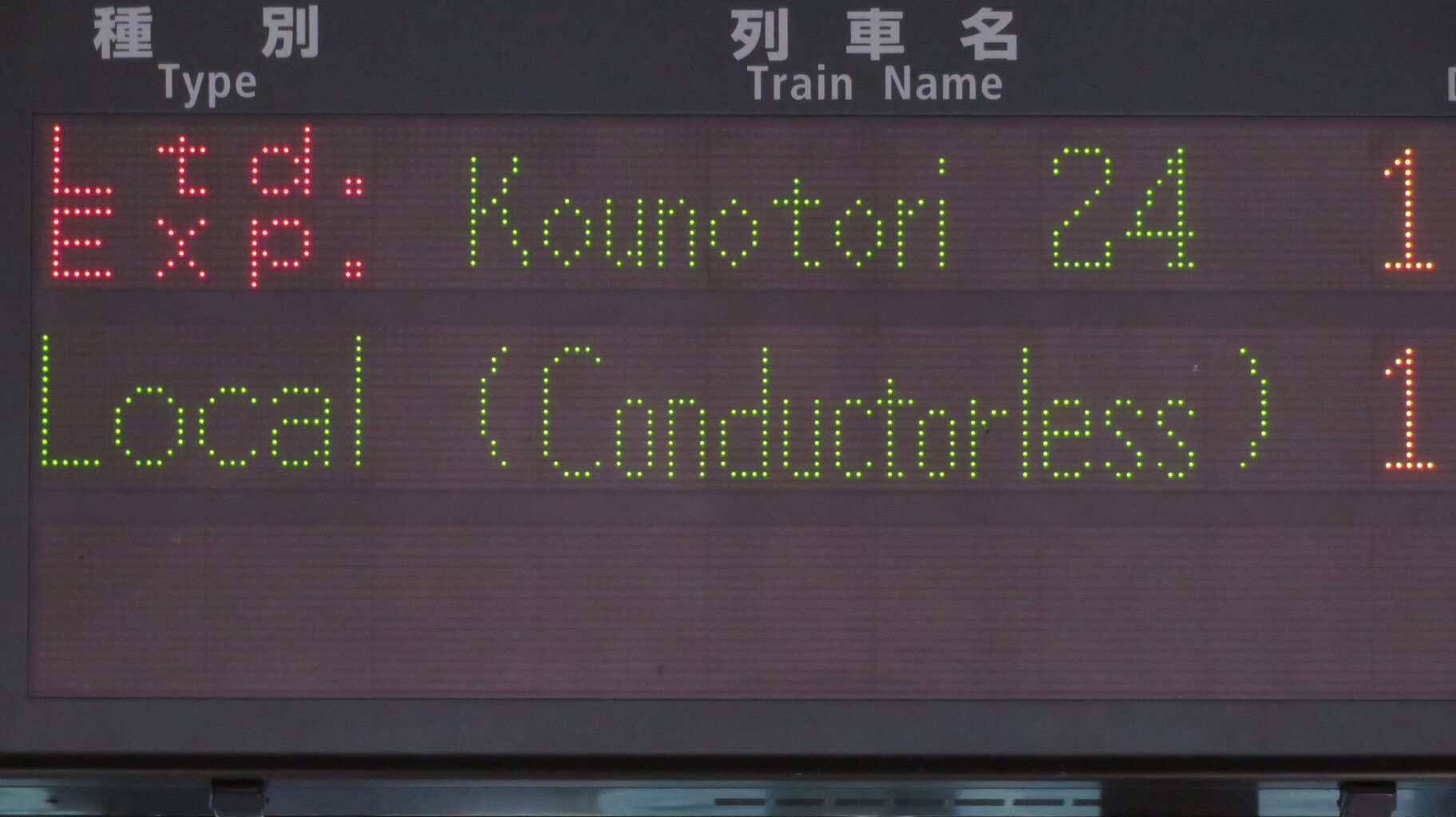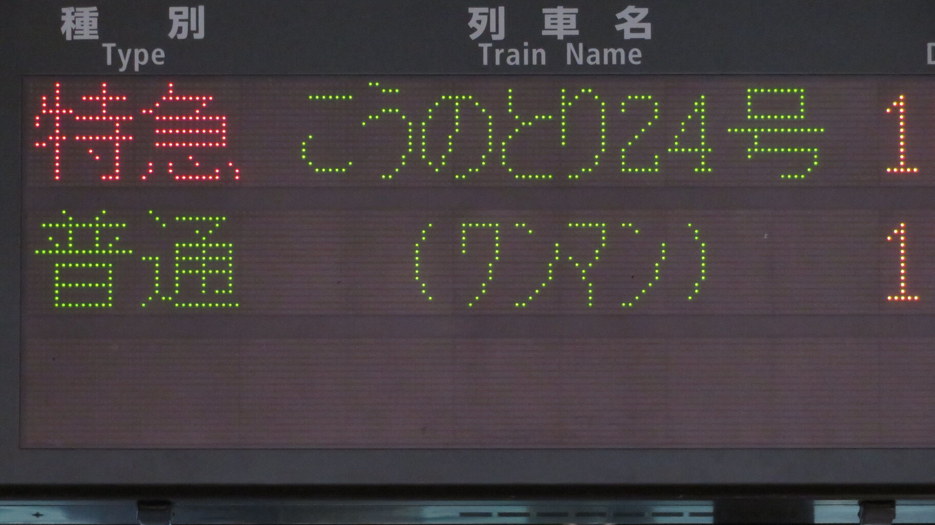 種別・列車名表示を拡大して撮影。