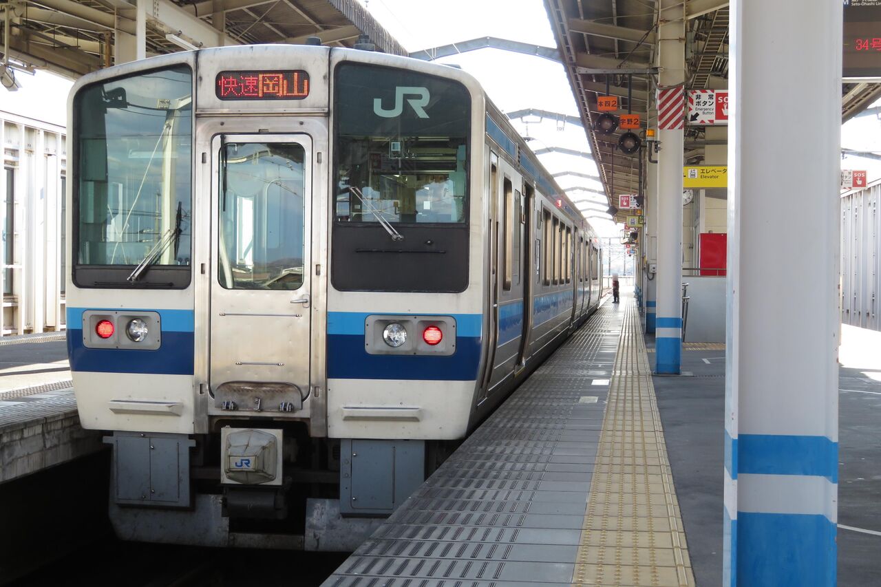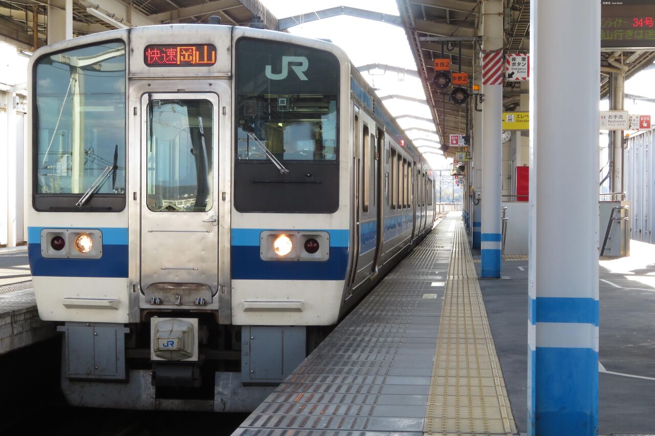2・3番のりばに到着した快速 岡山行きを撮影。