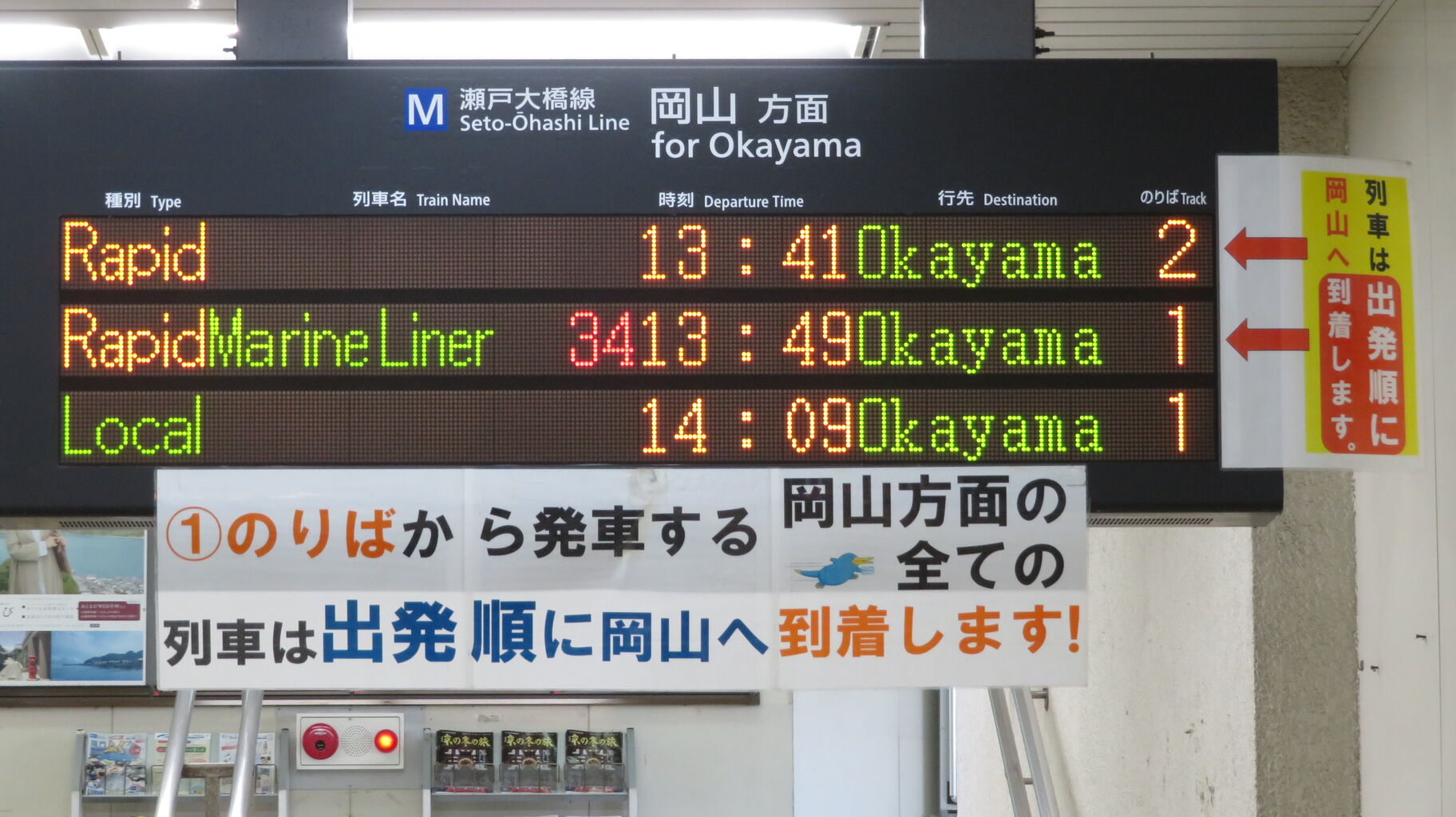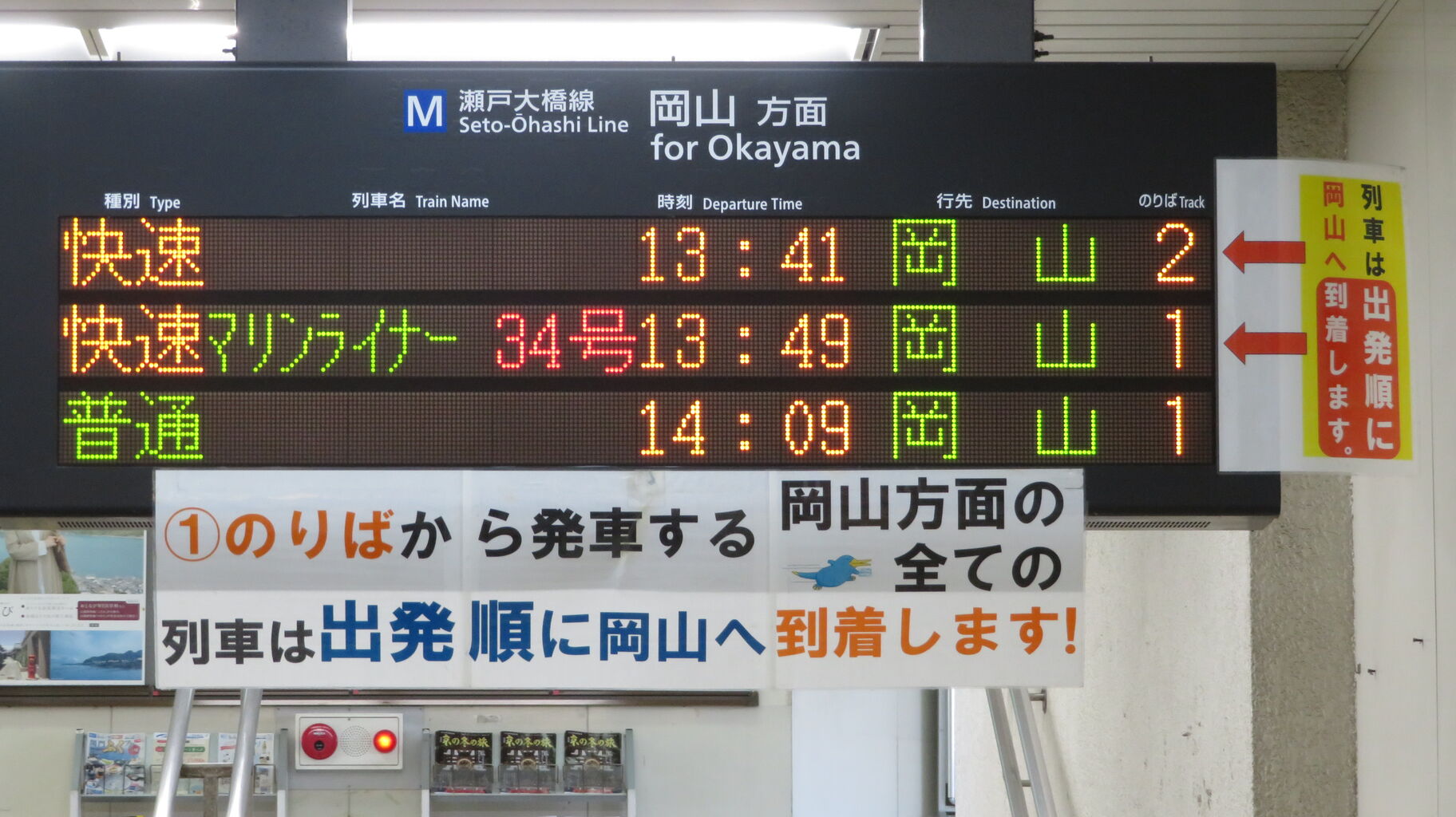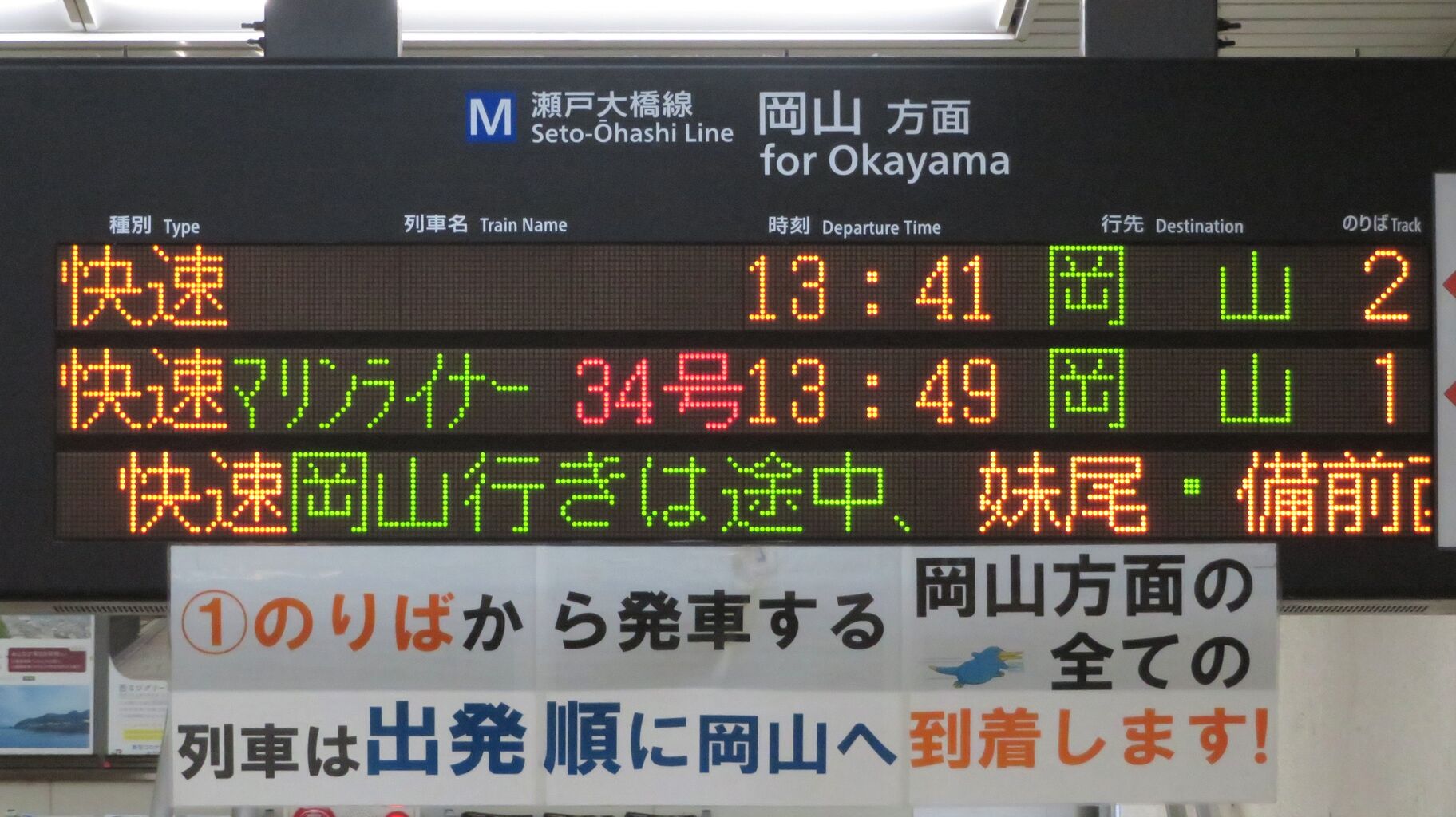 岡山方面の発車案内です。