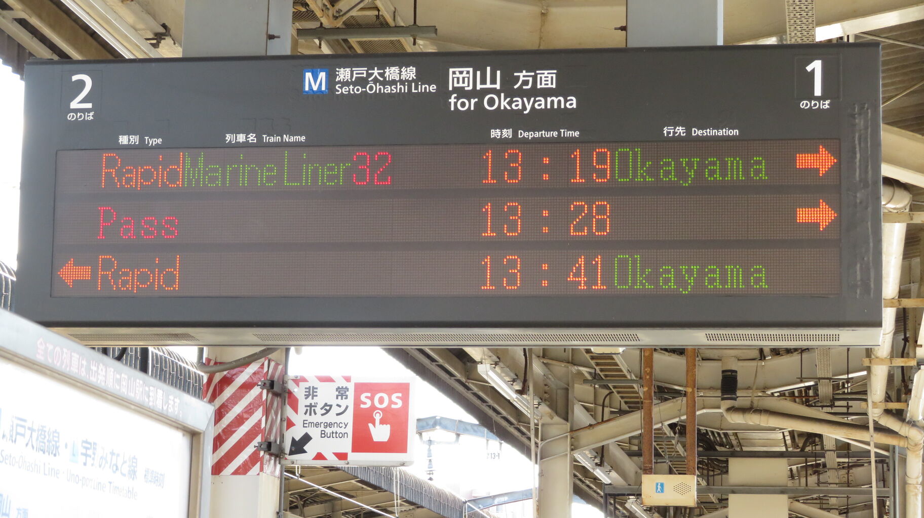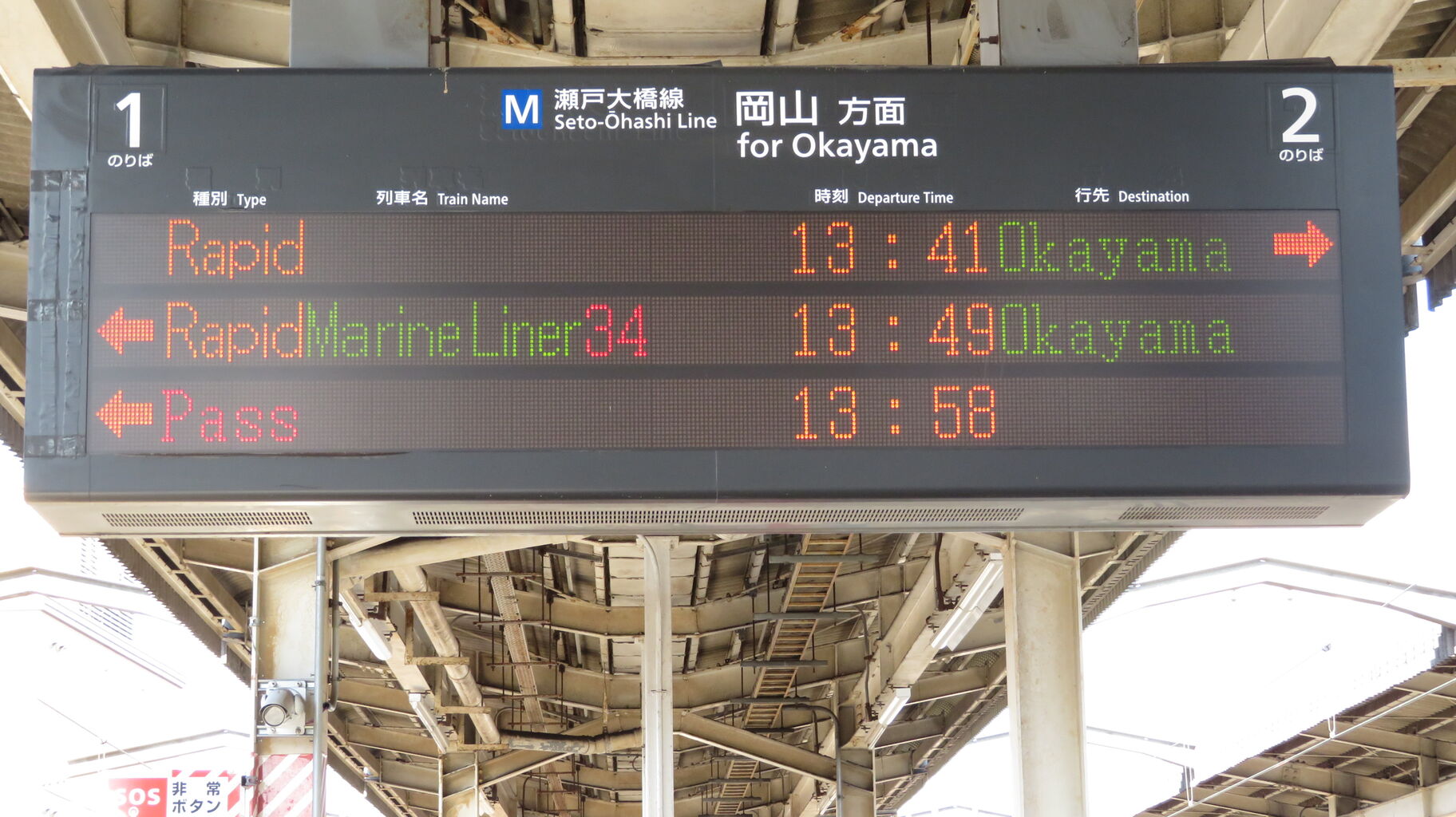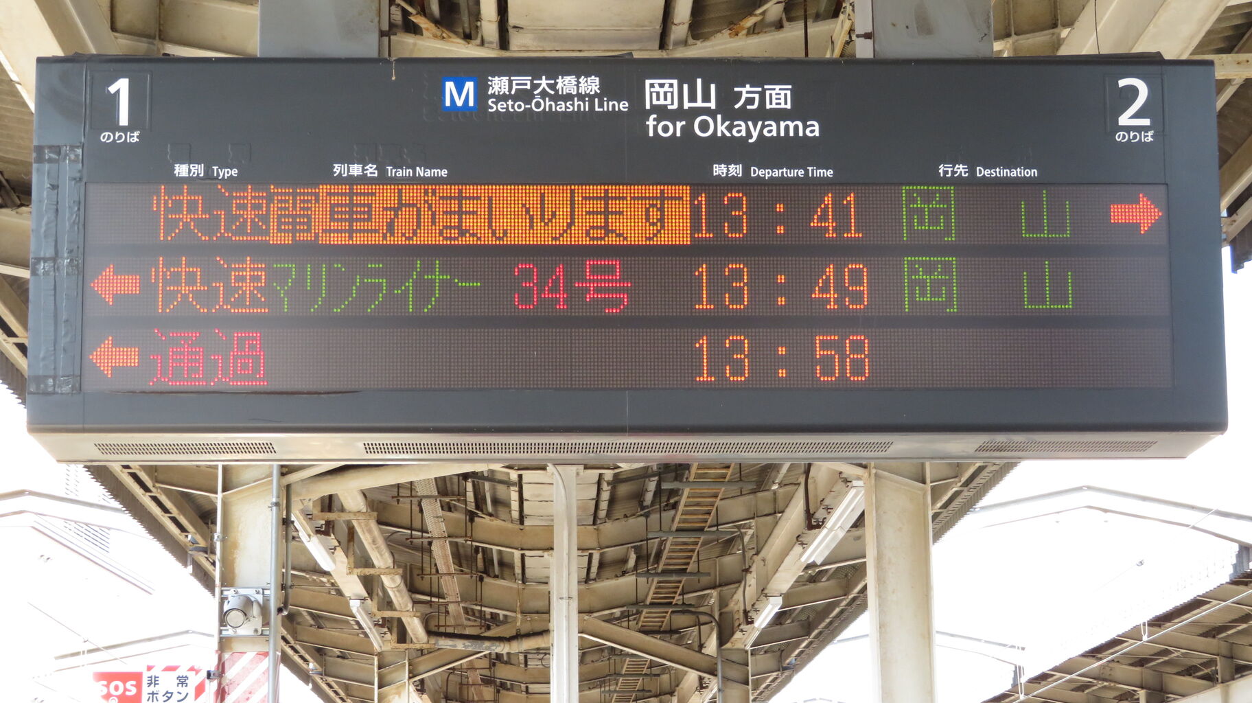岡山方面の発車案内です。