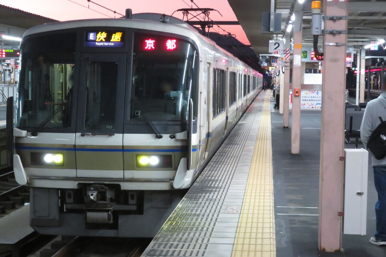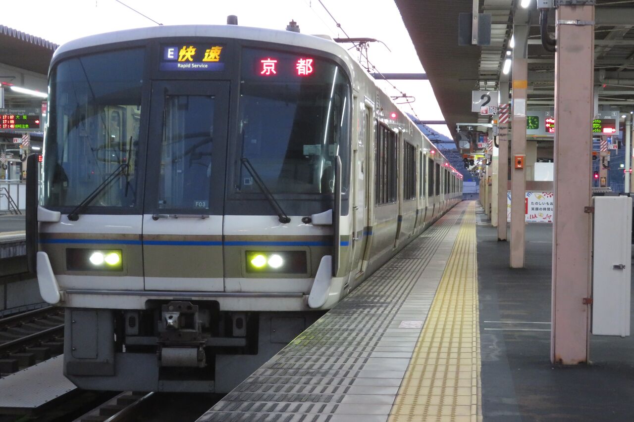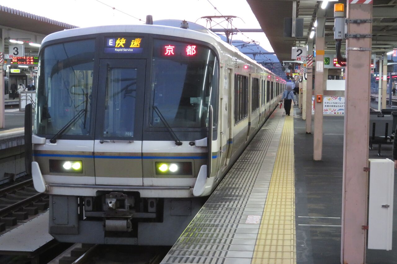 方向幕は、嵯峨野線の快速と同様、 E 快速 でした。