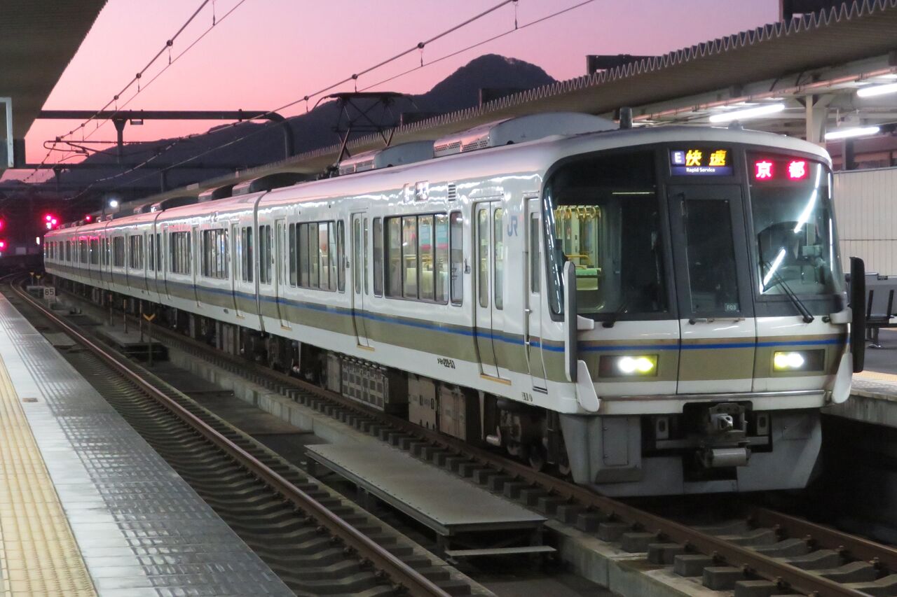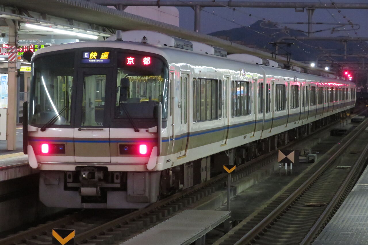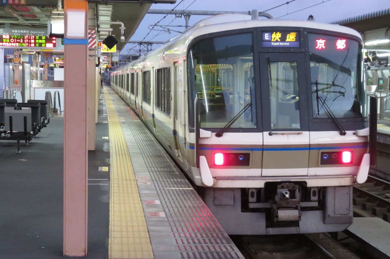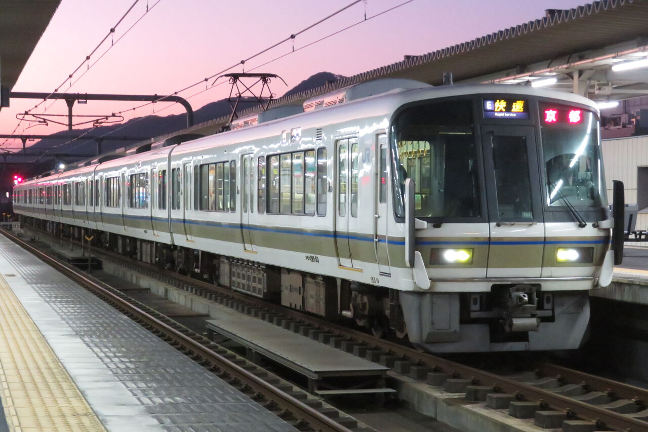 方向幕は、嵯峨野線の快速と同様、 E 快速 でした。
