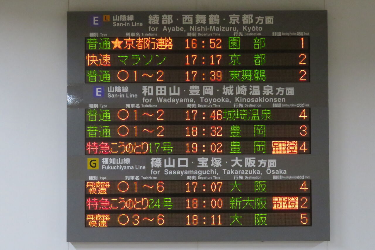 園部駅で5分間停車したので、その際に発車標を撮影しました。