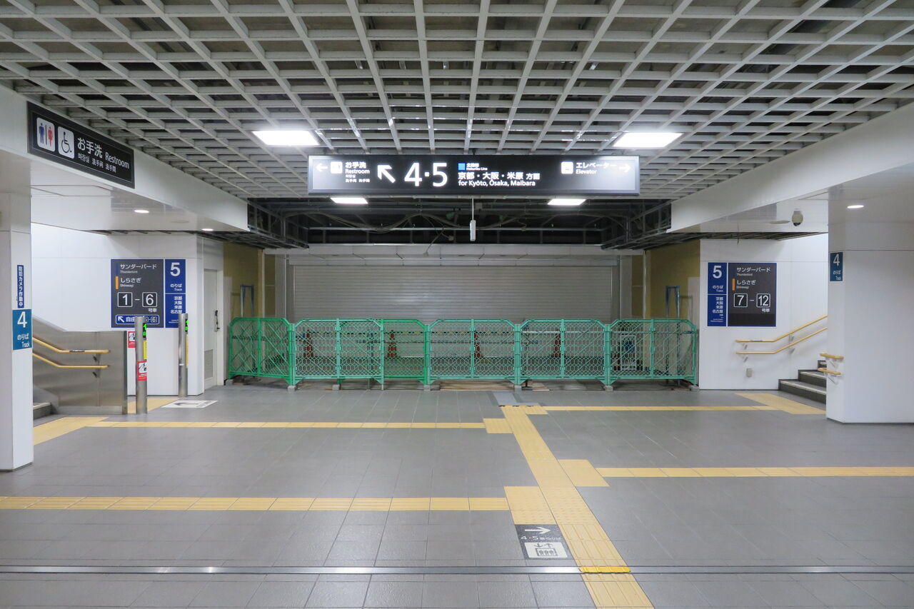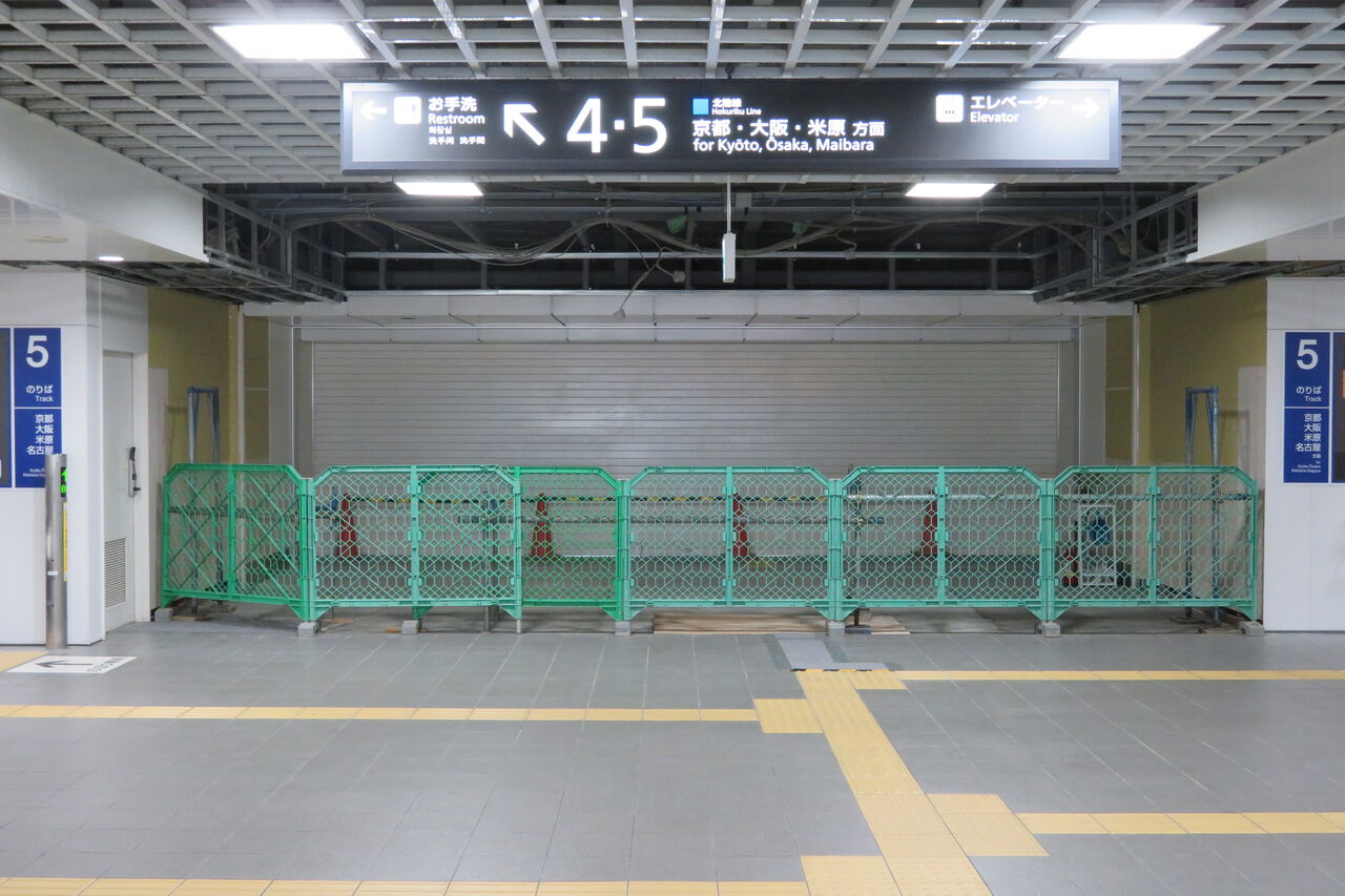 4・5番のりば側の奥にあった白い壁が取り払われ、新たな空間とシャッターが姿を現していたのです!