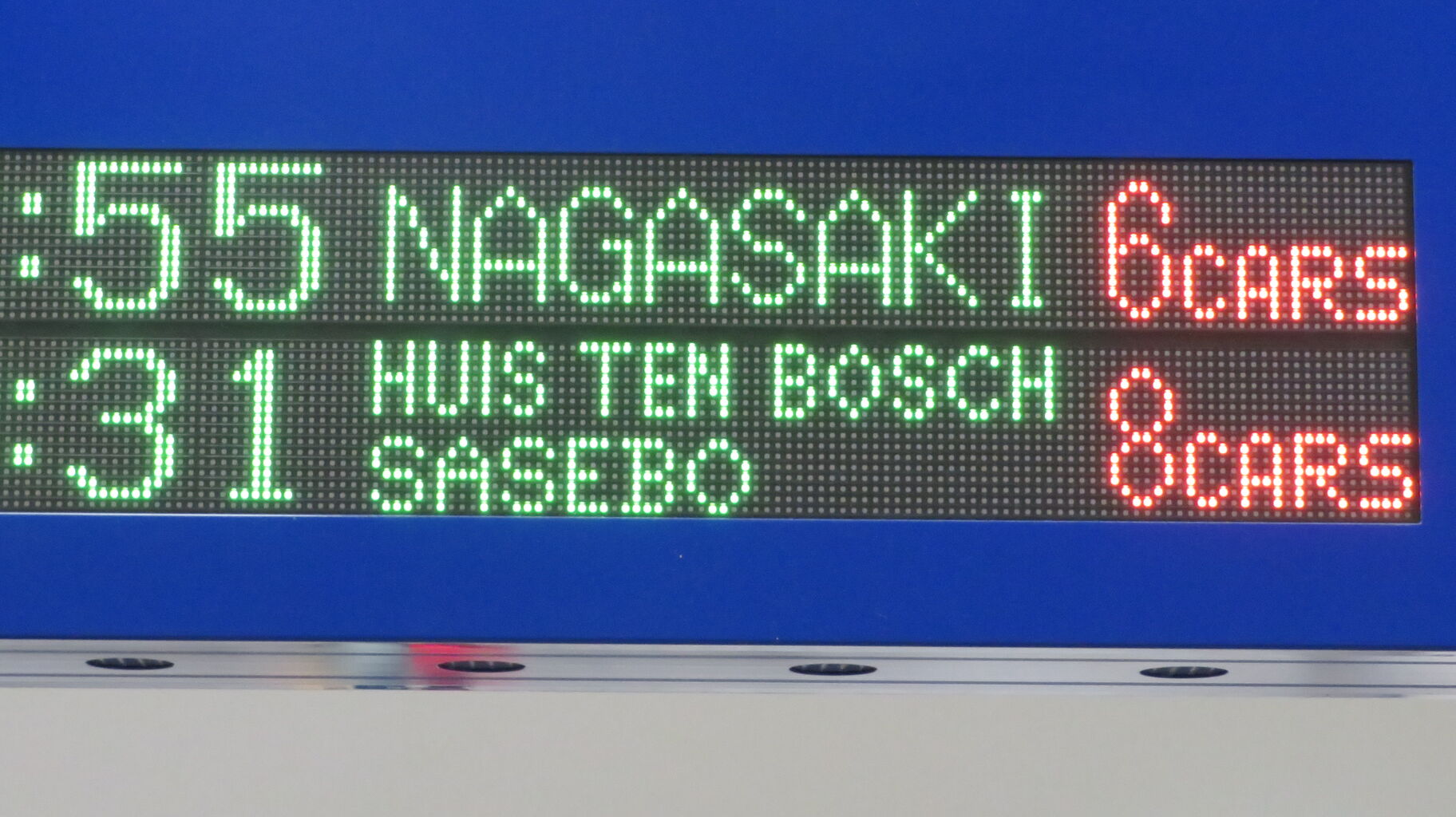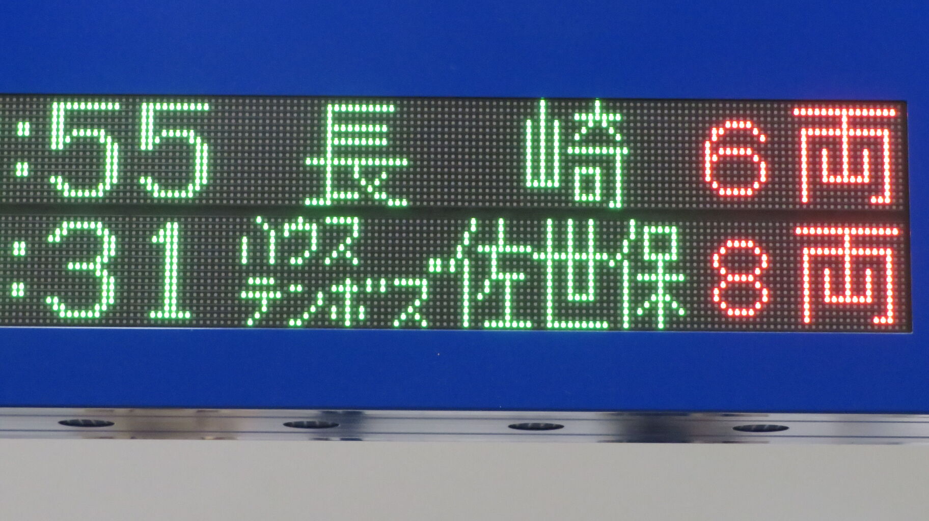 長崎行きとハウステンボス・佐世保行きの表示を拡大して撮影。