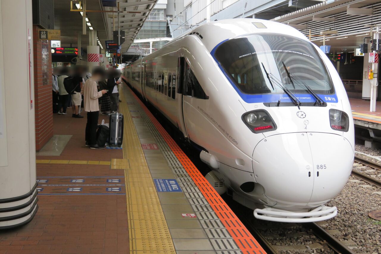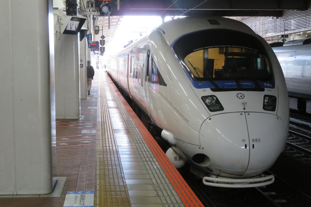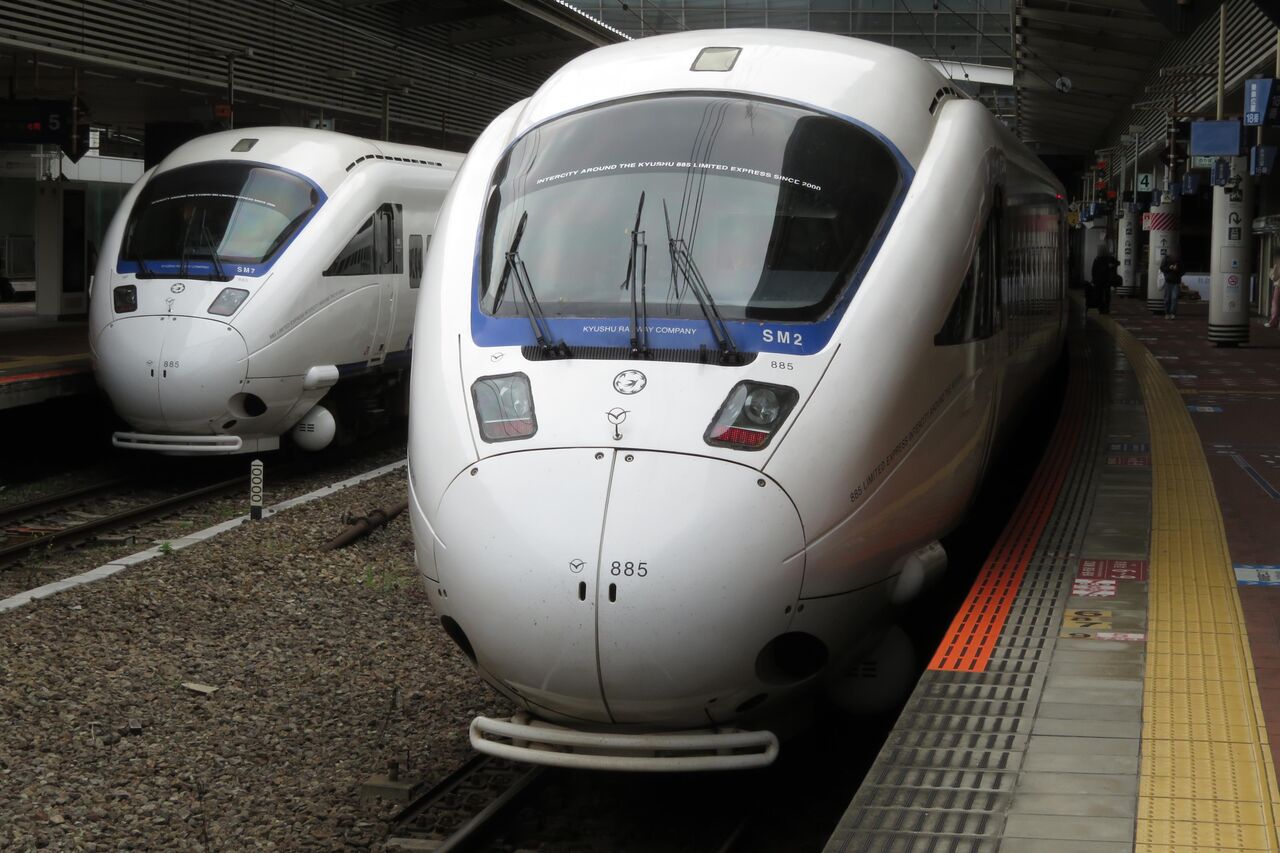 この885系は、大分方面へ向かう特急 「ソニック」 でも使用されています。