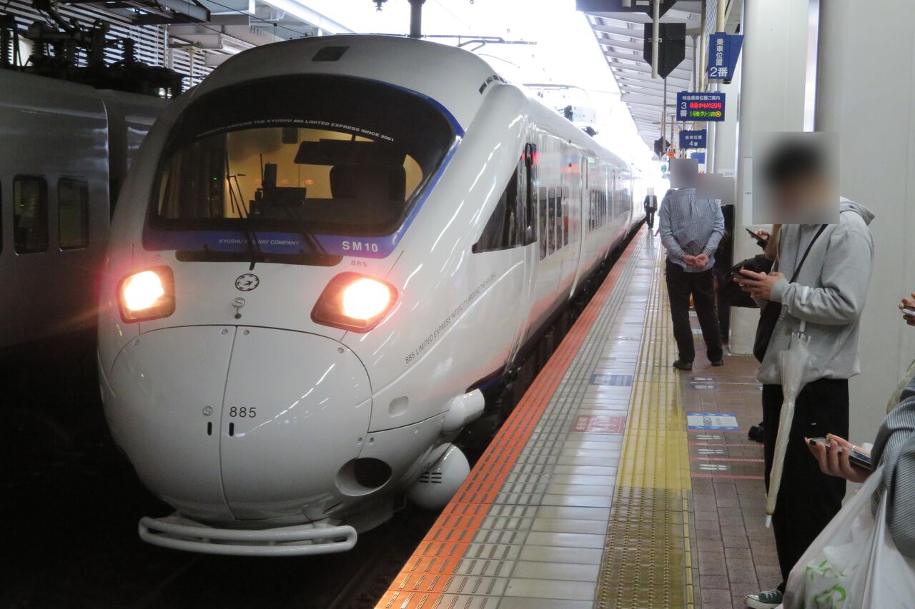 3番のりばに、特急 「かもめ」 長崎行き(885系)が停車中です。