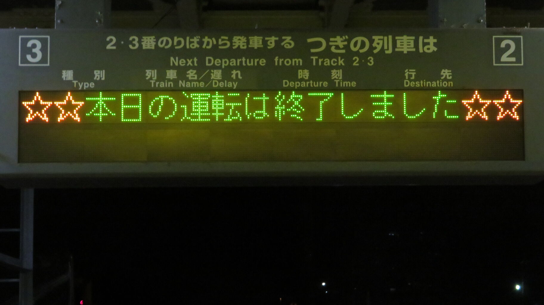 JR西日本の一部の駅では、最終列車の発車後、発車標に 「☆本日の運転は終了しました☆」 と ☆マーク付きで表示されます。
