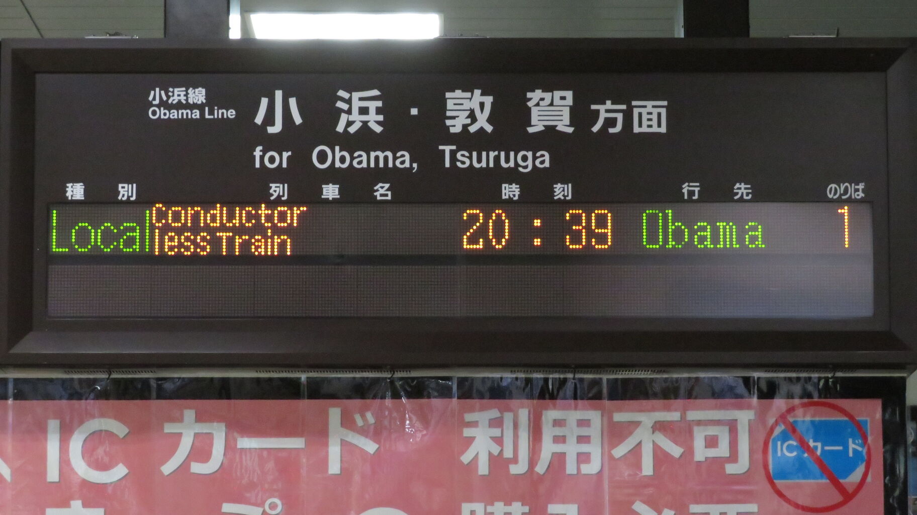 小浜行きの英語表示が出たのは わずか5分間だけ ということになります。