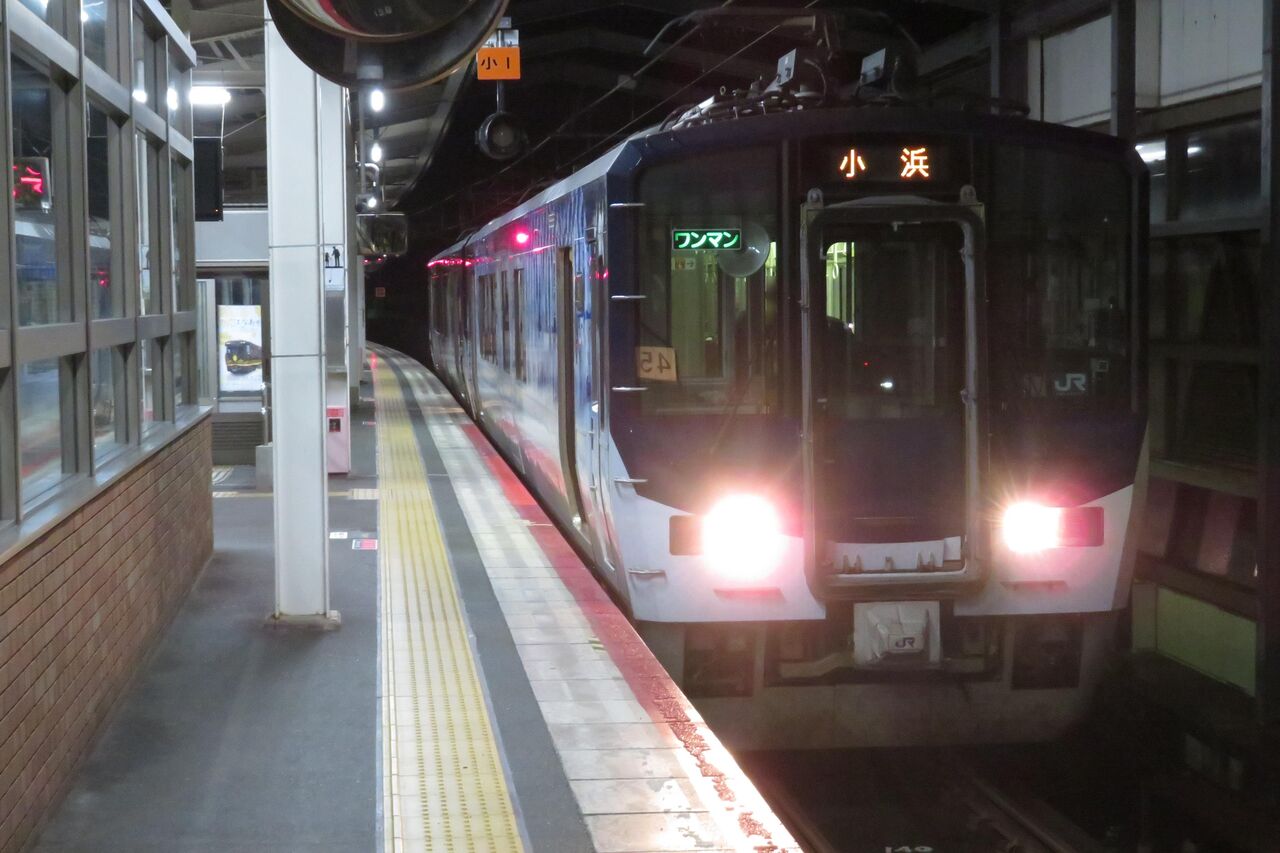 この列車が折り返し、20:39発の普通 小浜行きとなります。