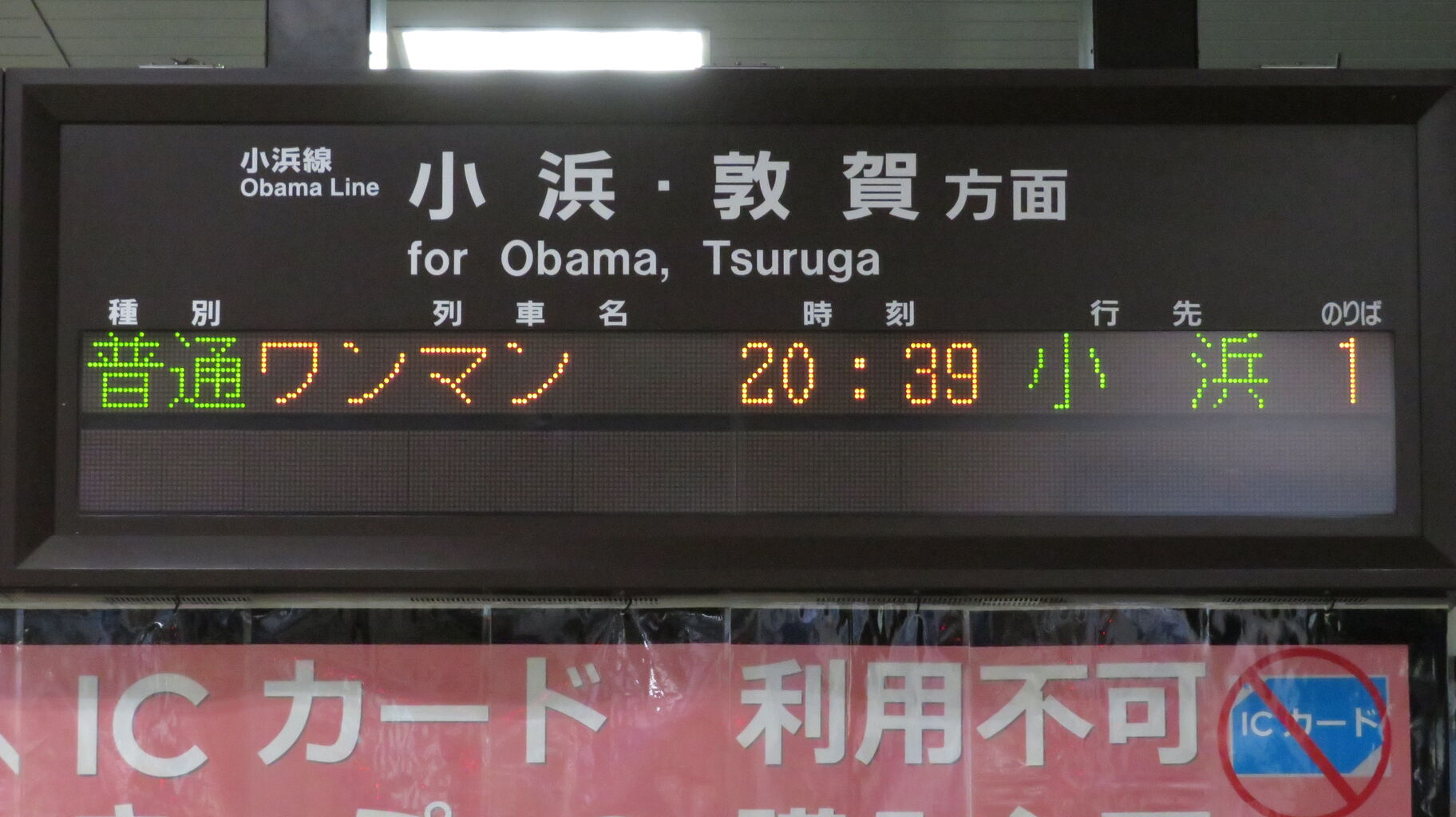 ちなみに、敦賀駅で撮影した普通 小浜行きの表示は こんな感じ。