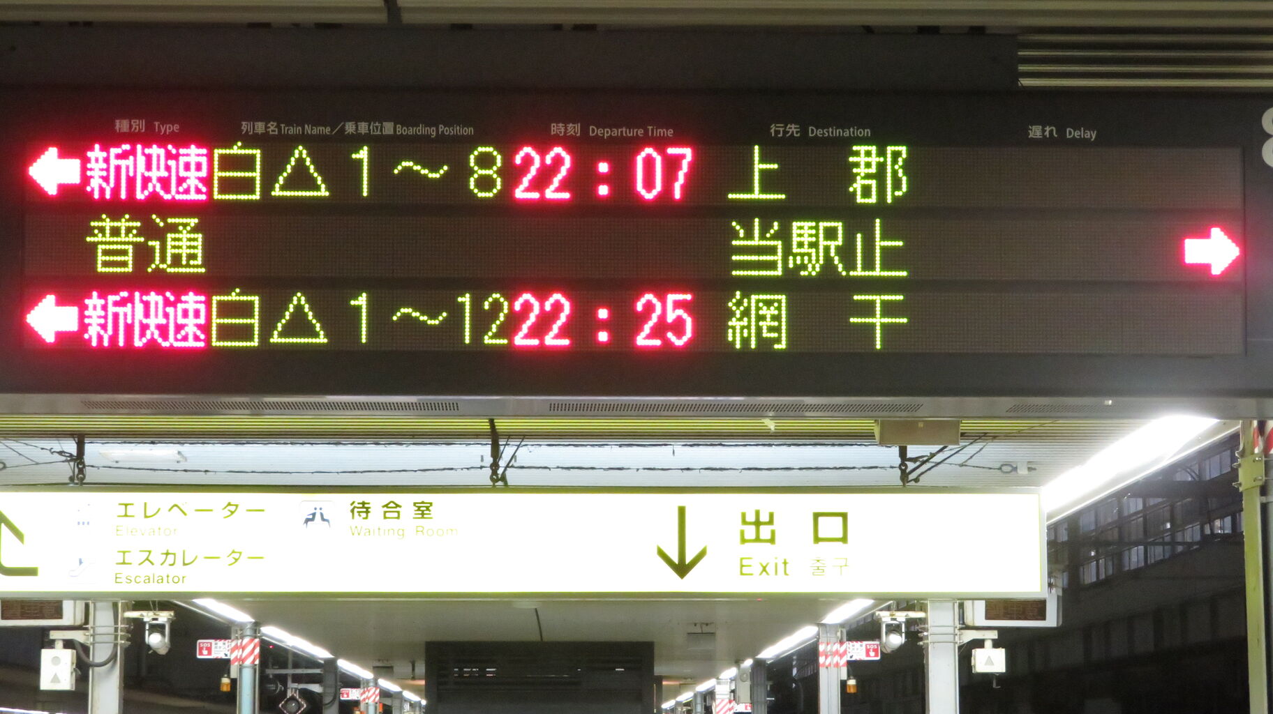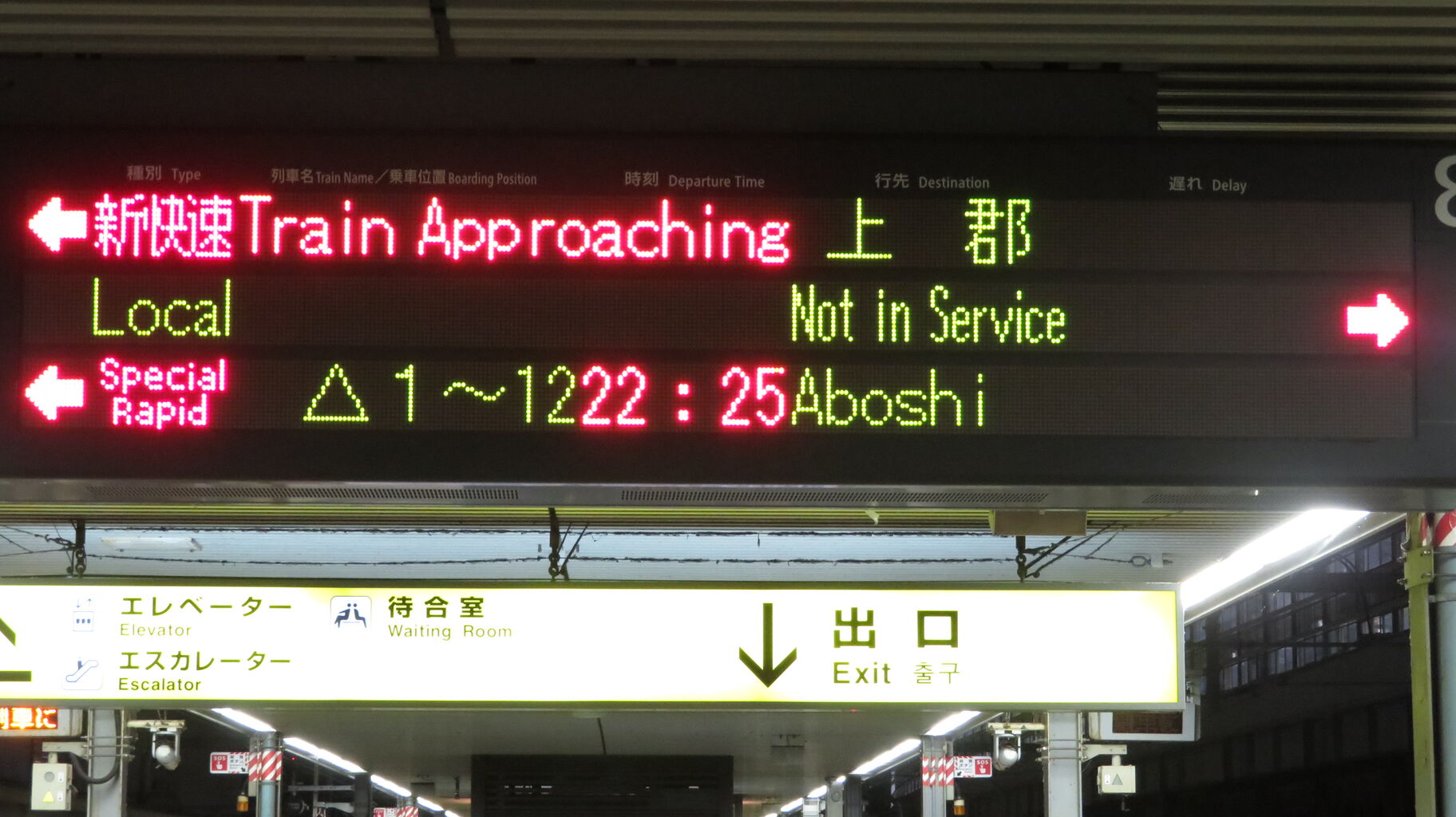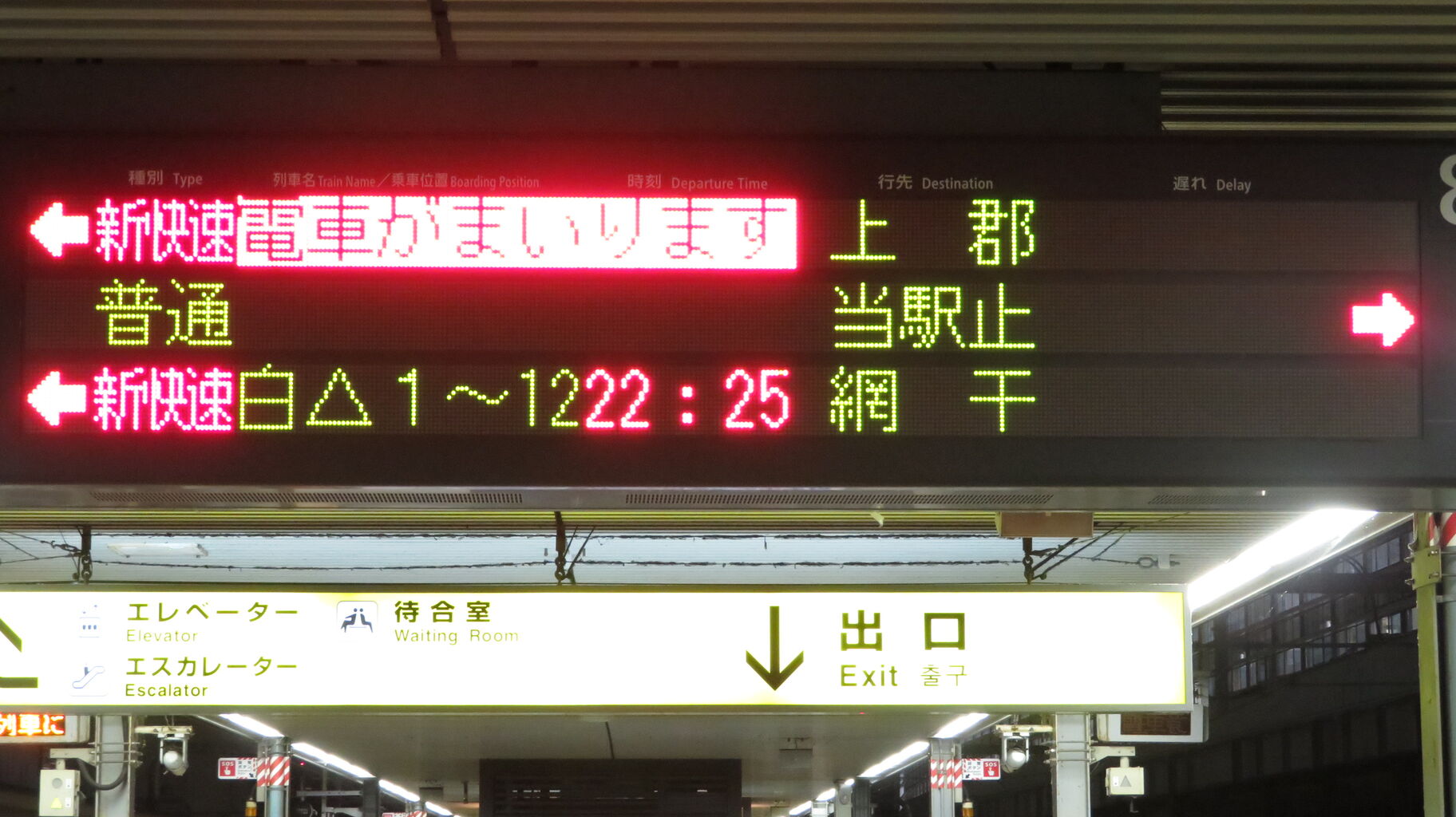 続いて、中央改札口に設置されている発車標を撮影。