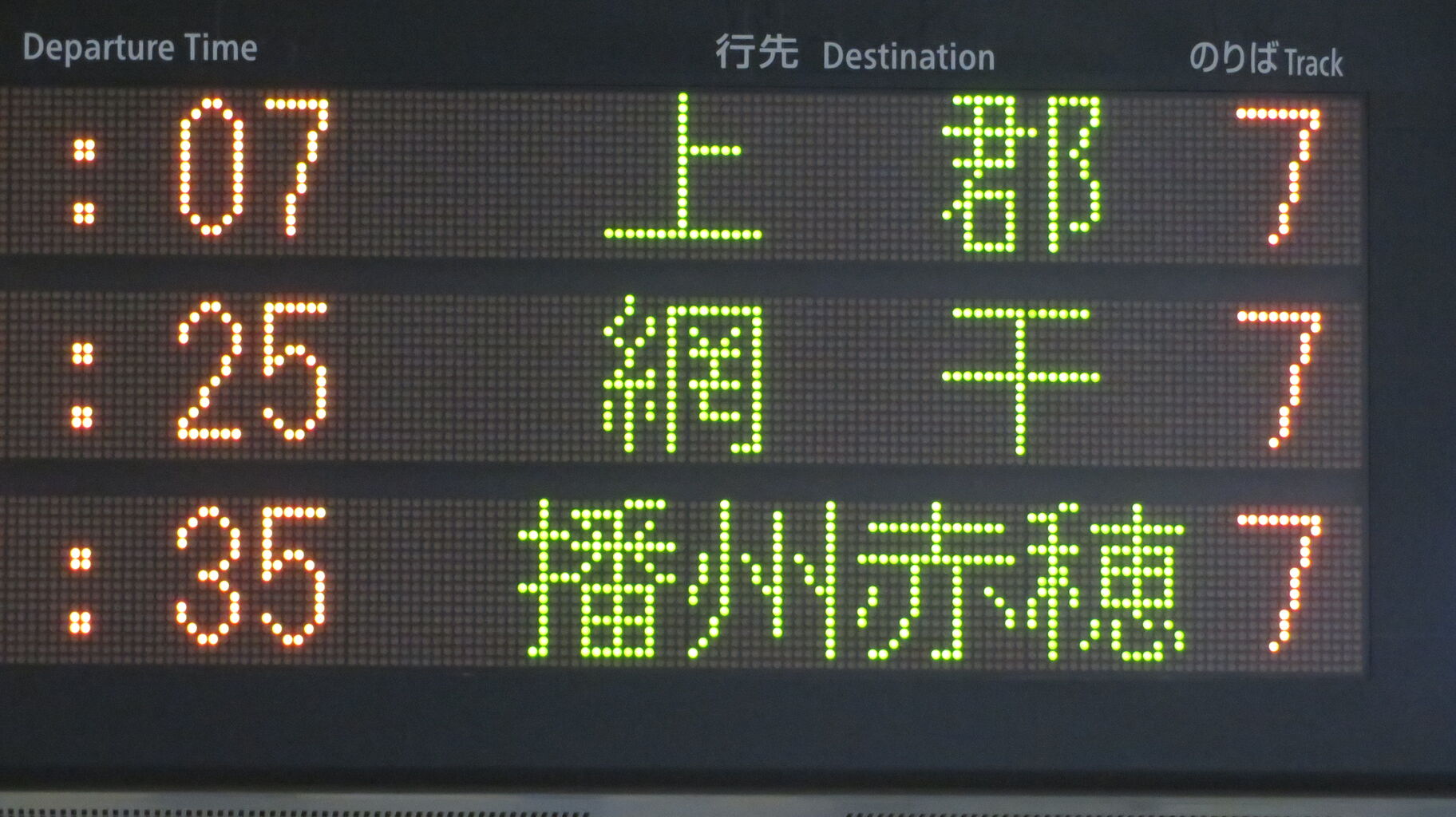 7・8番のりばに設置されている発車標は、こんな感じ。