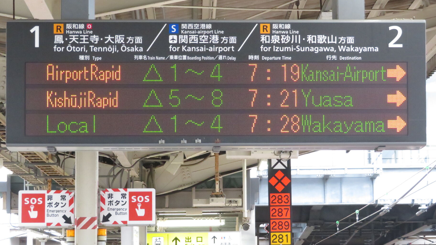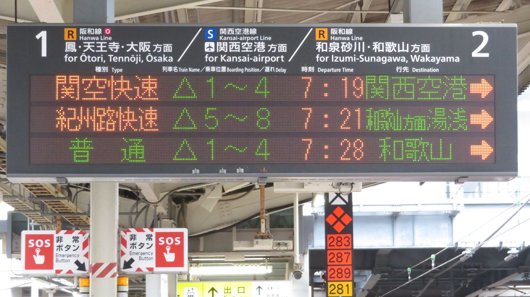 「海南」 の下は、「Wakayama・Kainan」 と 「和歌山方面」 が交互に表示されます。