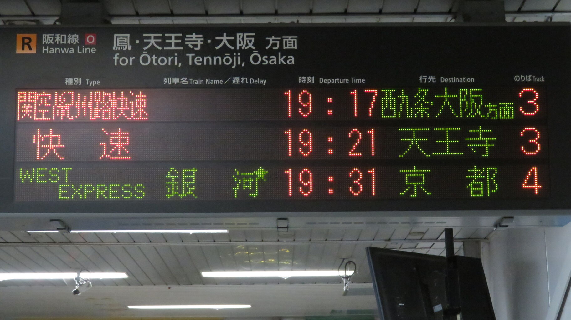 京阪神地区の他の駅と同様、★マークが印象的な表示です。