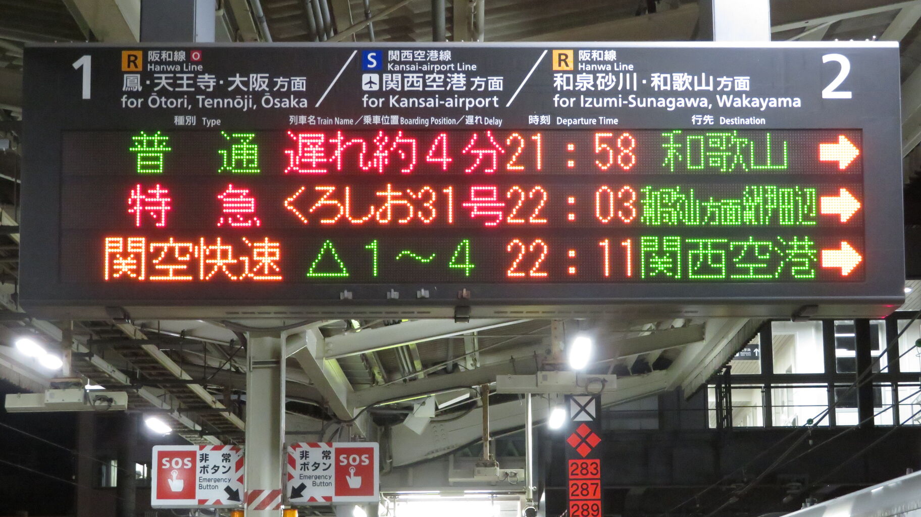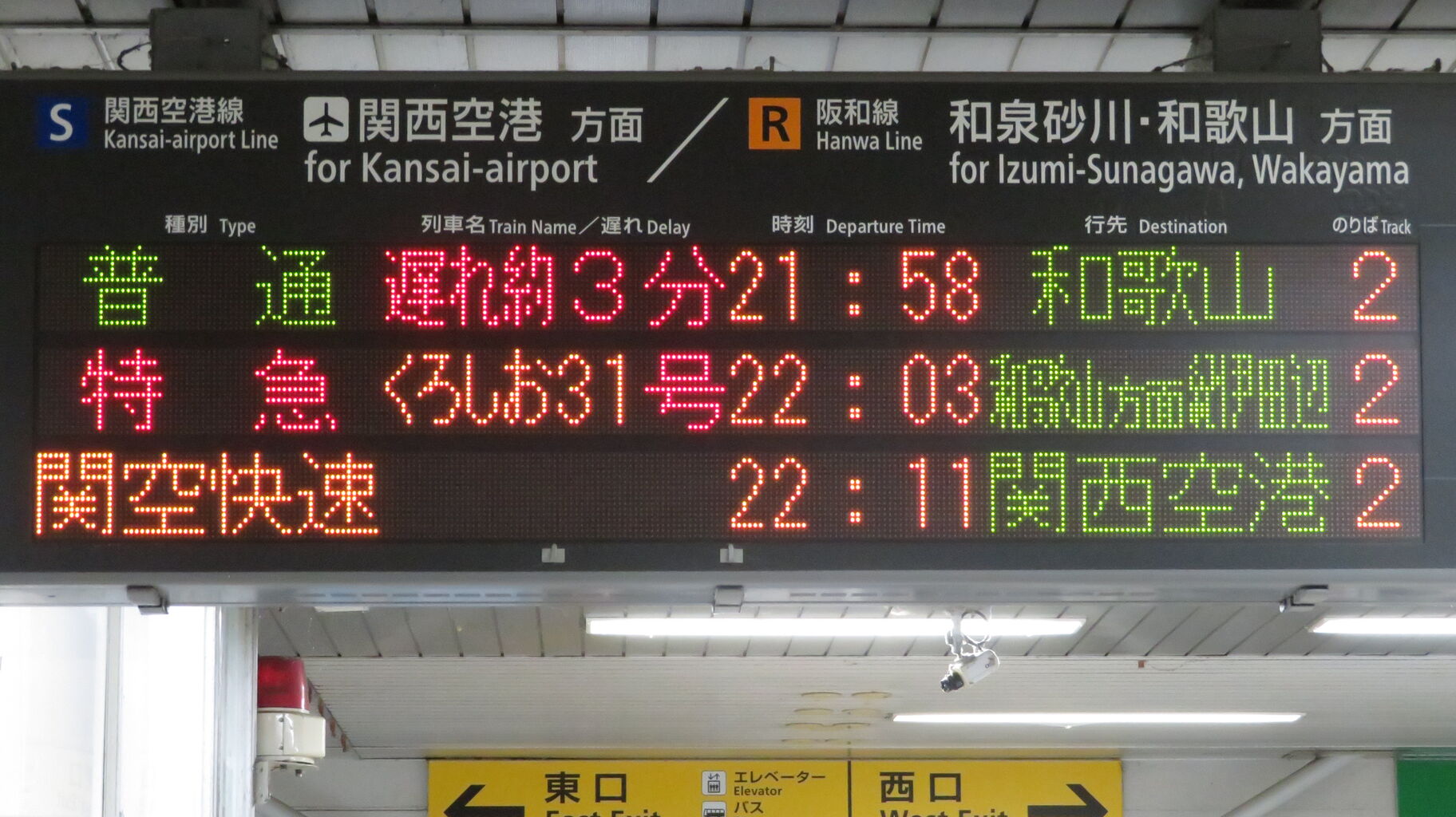 一番上の普通 和歌山行きに、「遅れ約3分」 の表示が出ました。