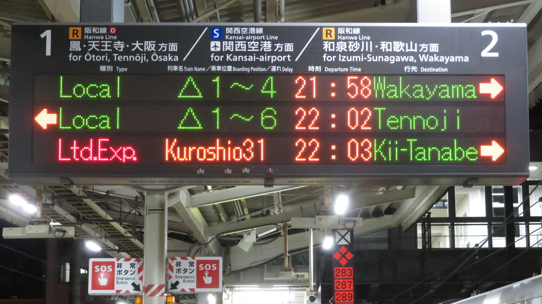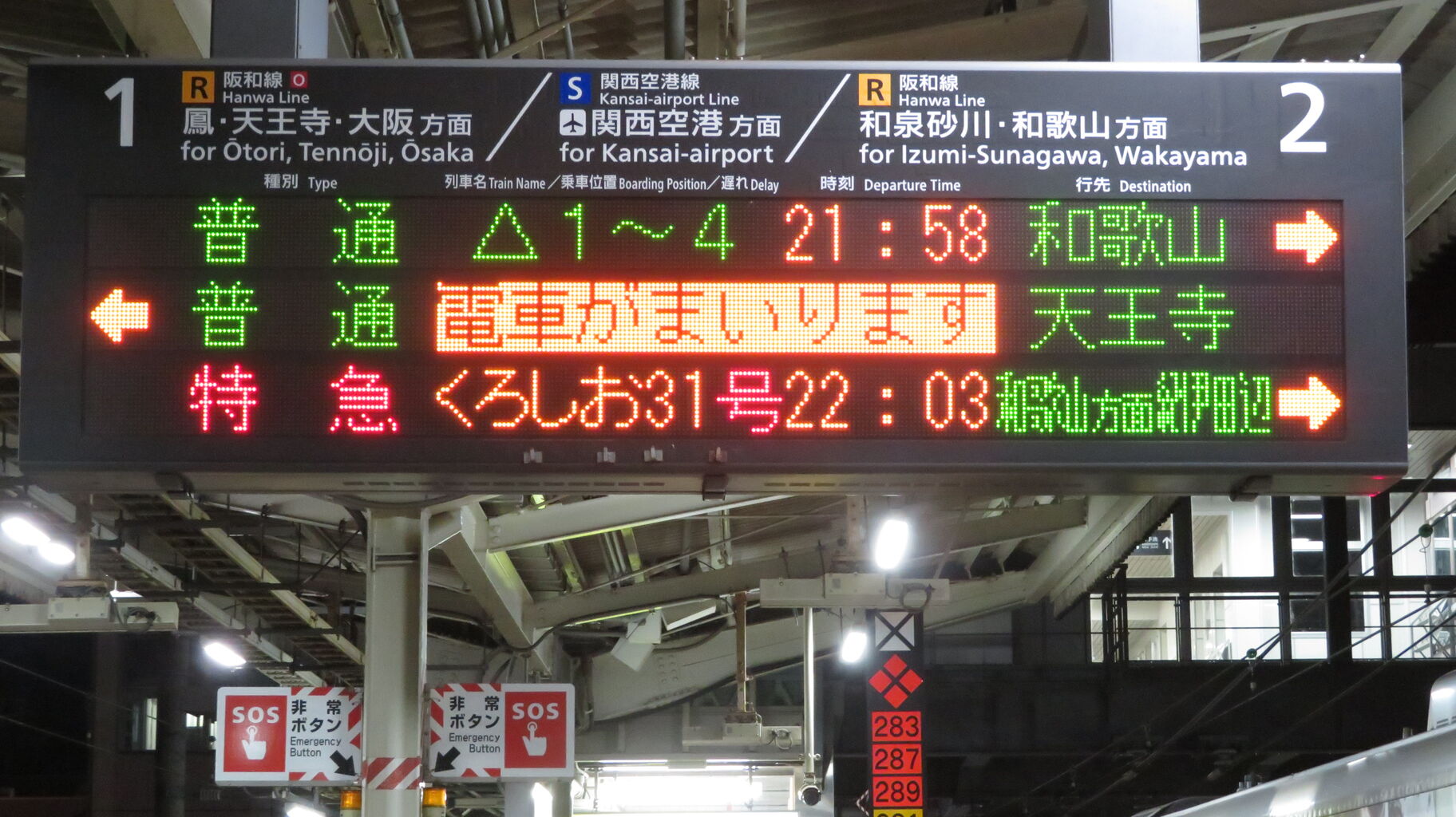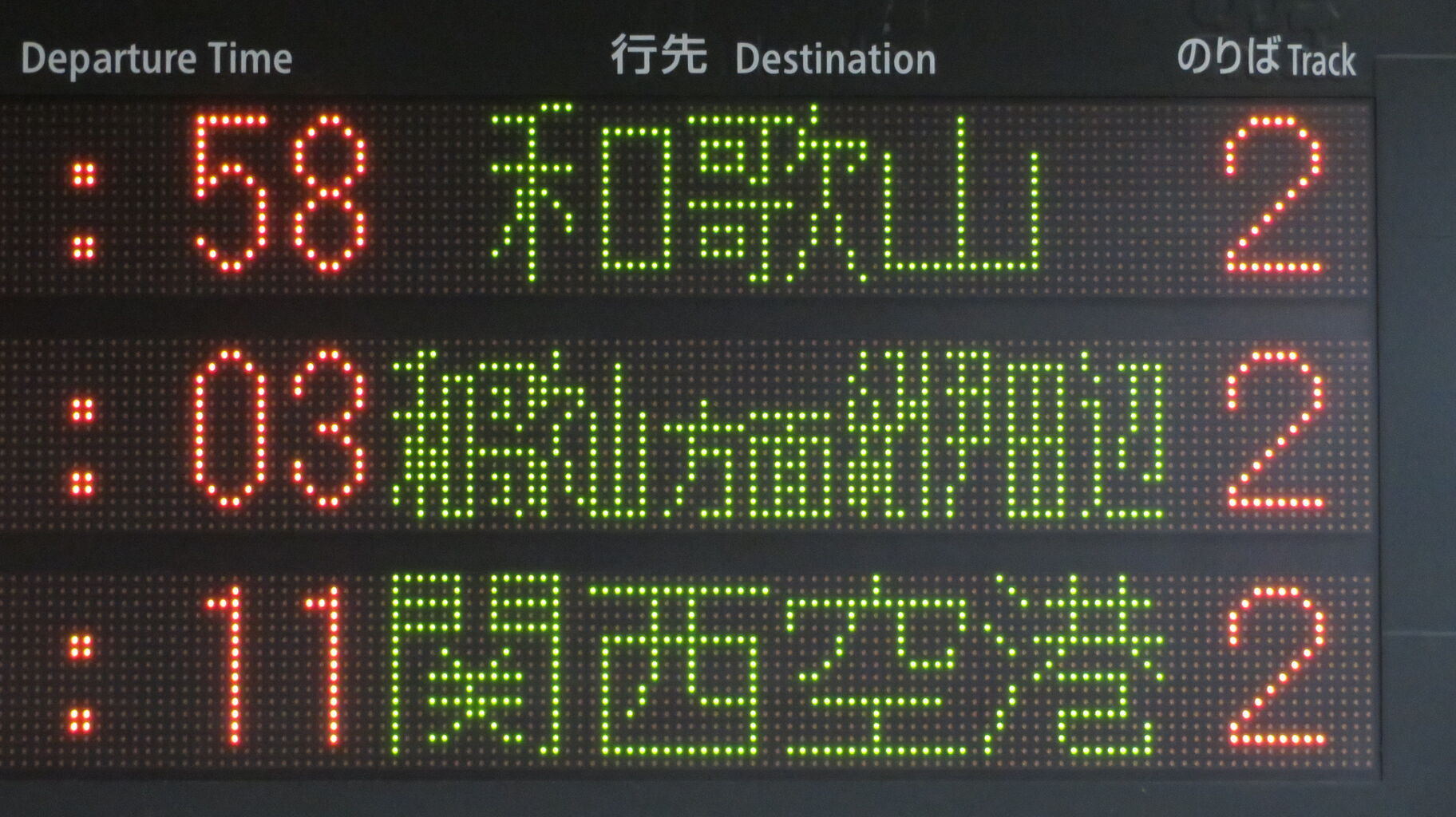 普通 和歌山行きの発車後、特急くろしお 紀伊田辺行きの発車案内が 一番上の段に表示されました。
