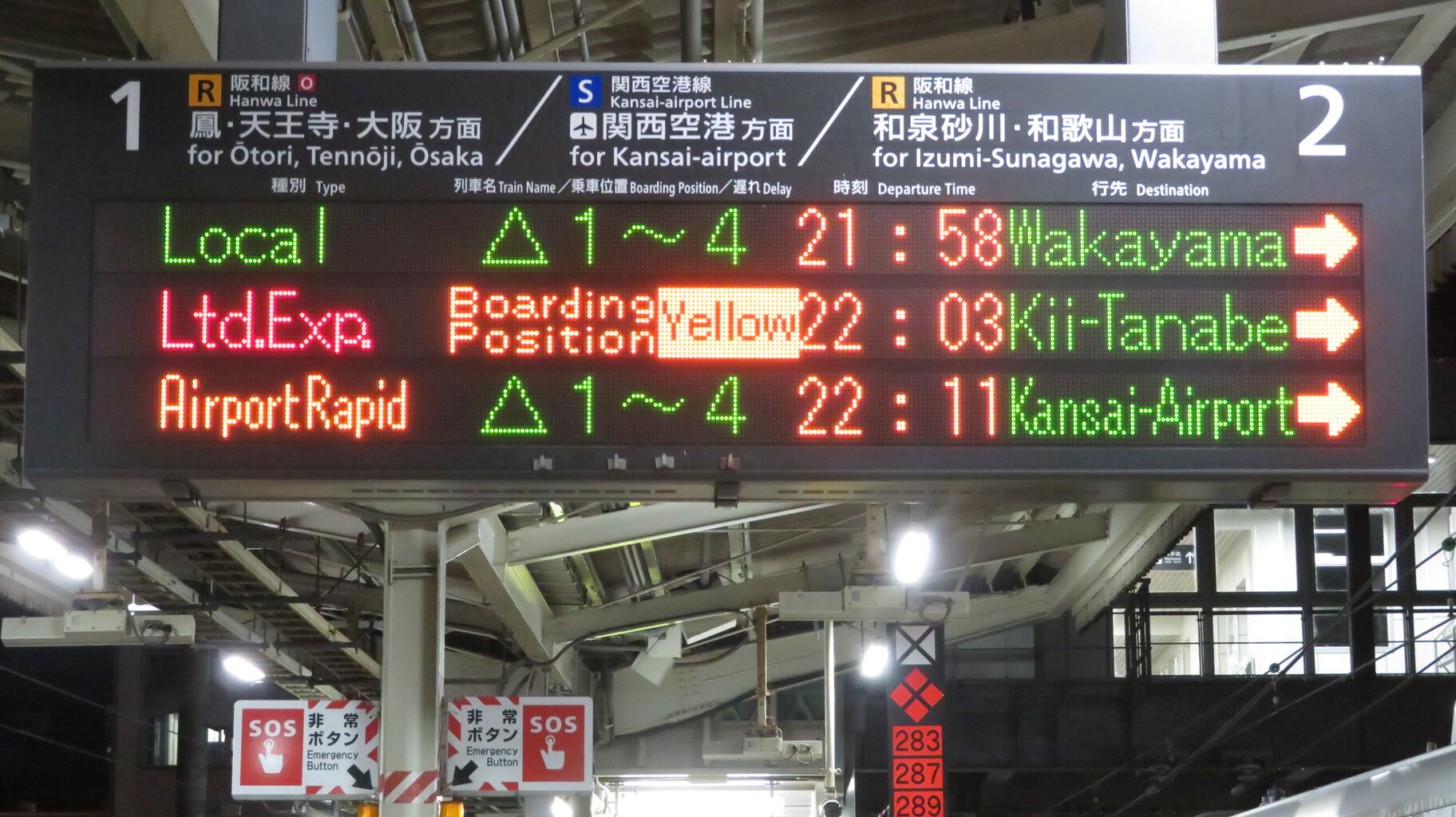 和歌山駅を除く 阪和線の駅では、紀伊田辺行きを 「和歌山方面 紀伊田辺行き」 と案内します。
