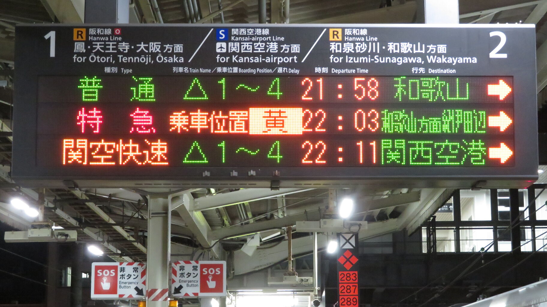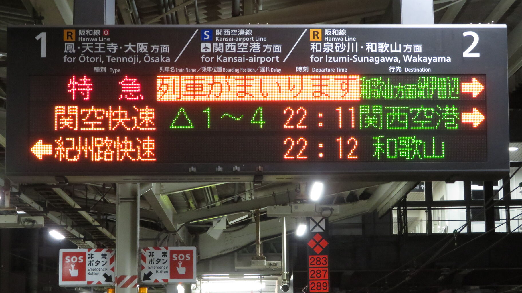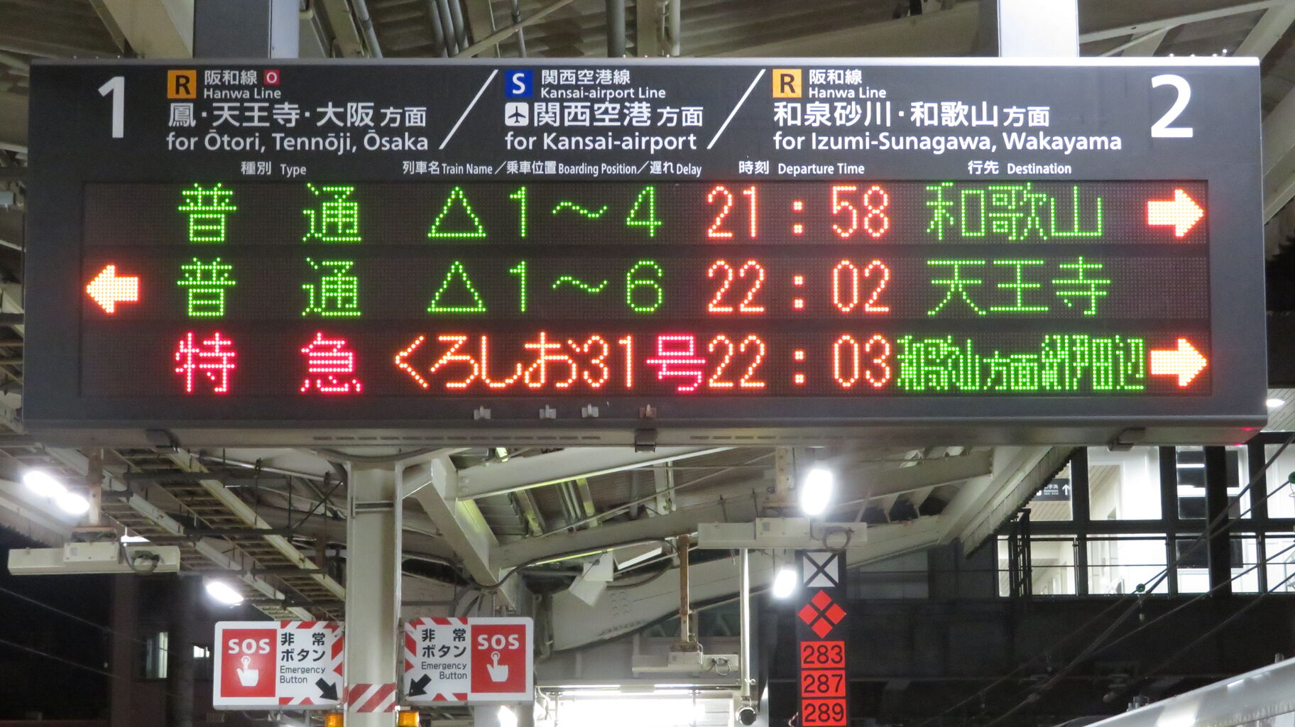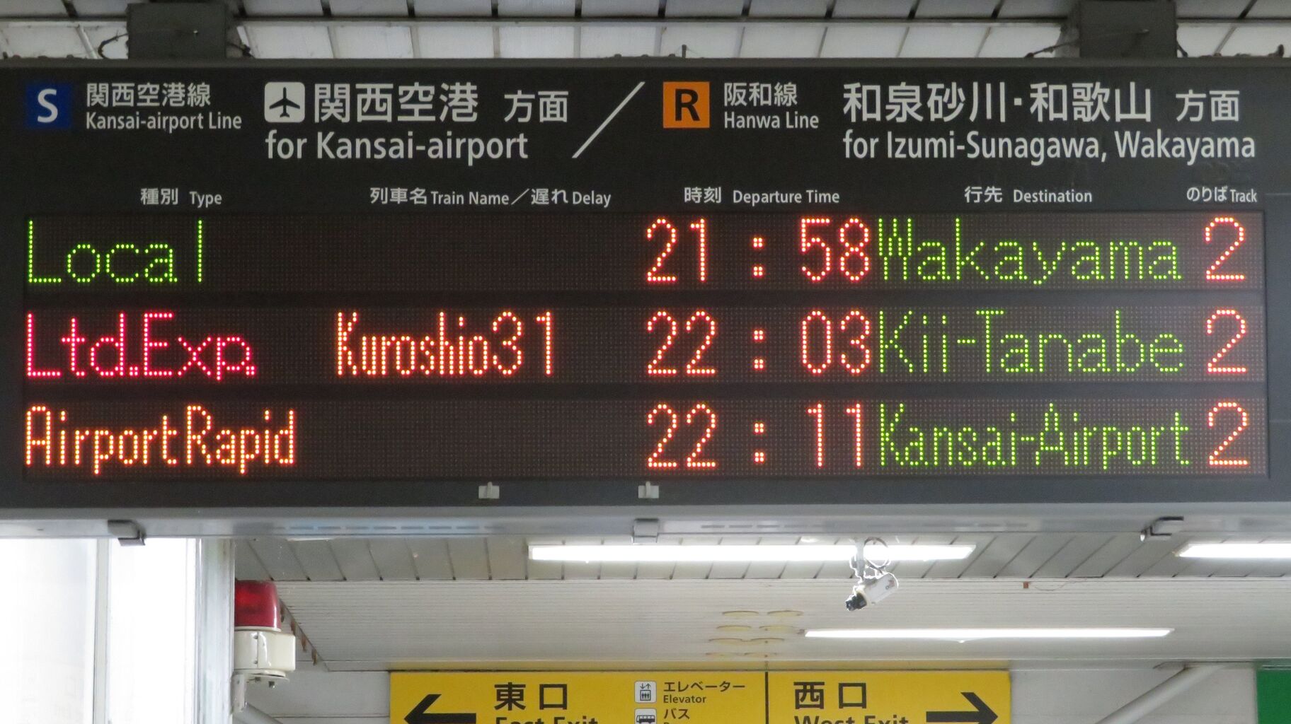 特急くろしお 紀伊田辺行きは、日根野駅を22時3分に発車します。
