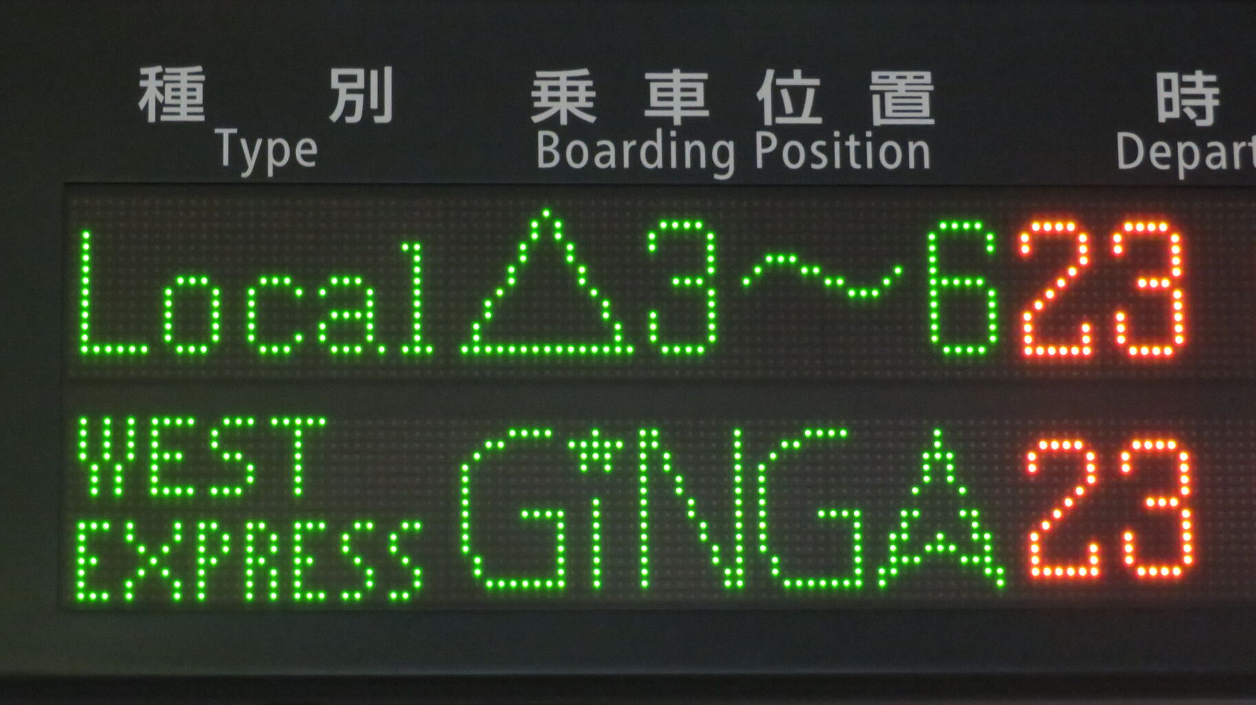 こちらは、中央口に設置されている発車標です。