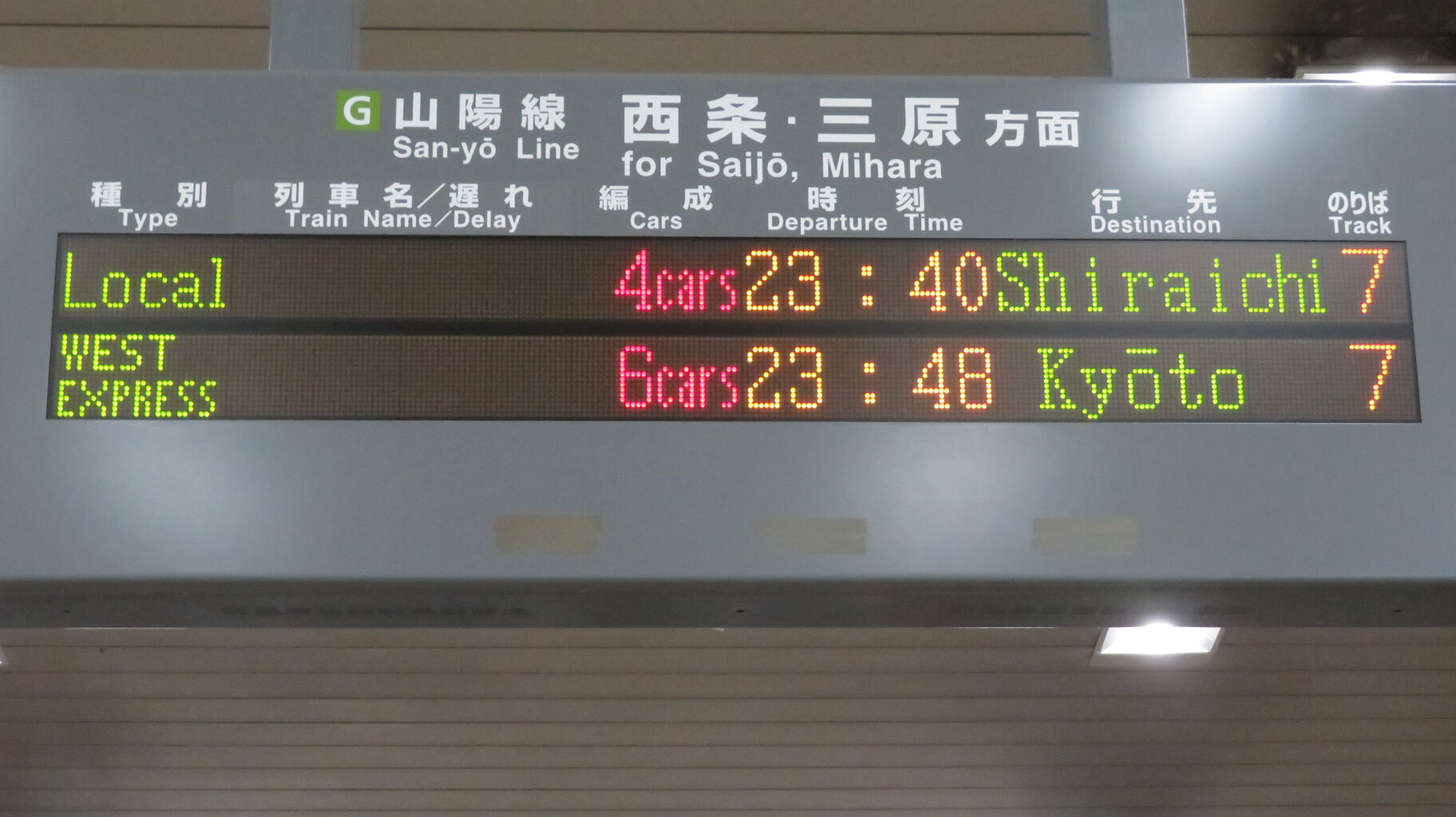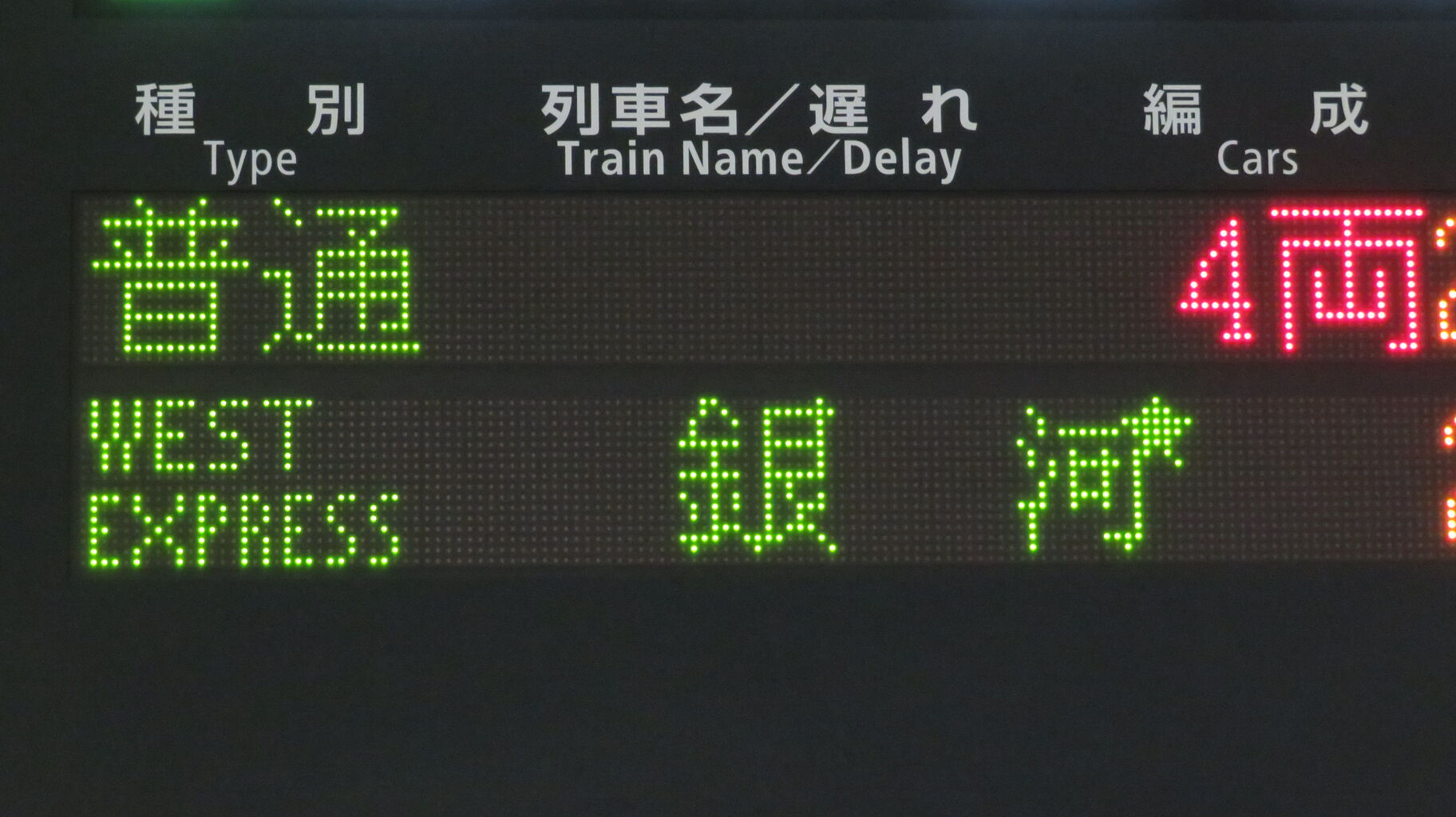 「WEST EXPRESS 銀河」 京都行きの案内が、上の段に表示されました。