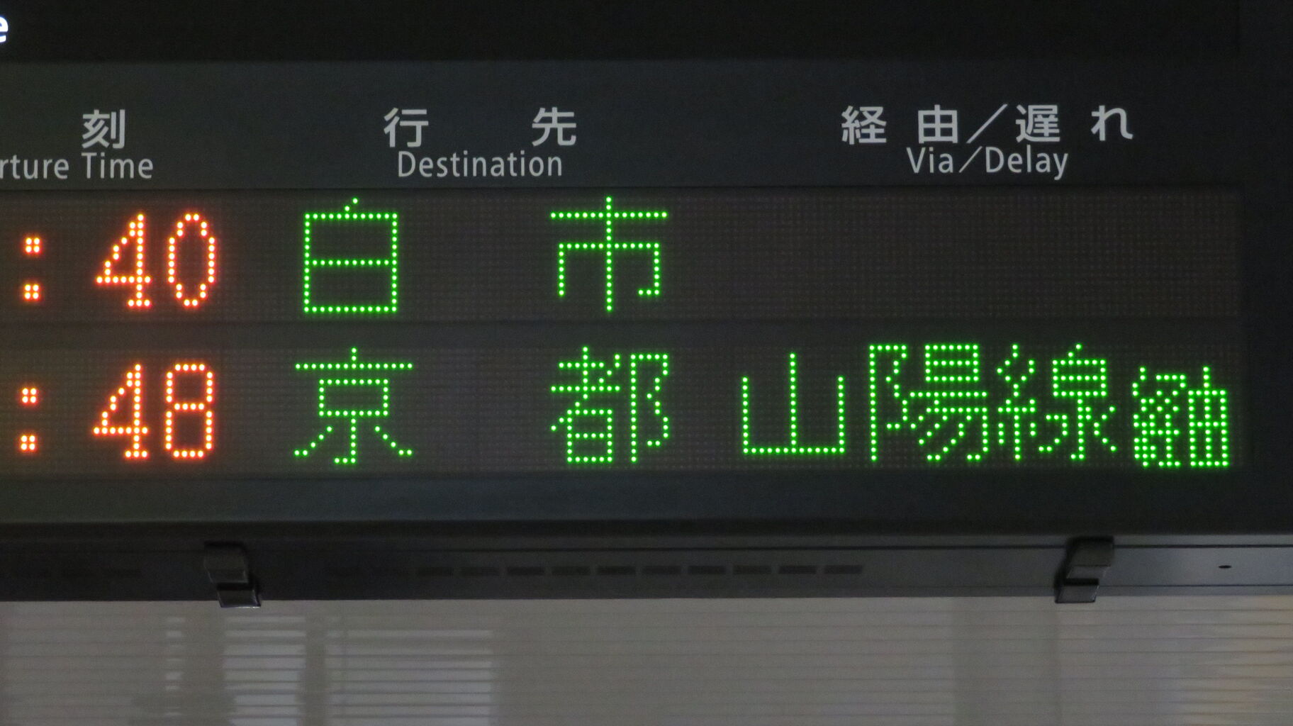 まずは、改札内跨線橋に設置されている発車標から。