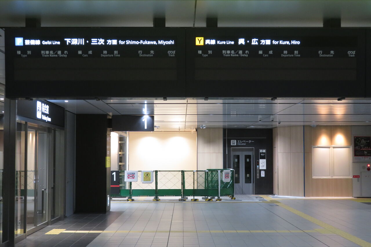 しかし、広島駅では 最終列車が発車すると、発車標に何も表示されなくなります。