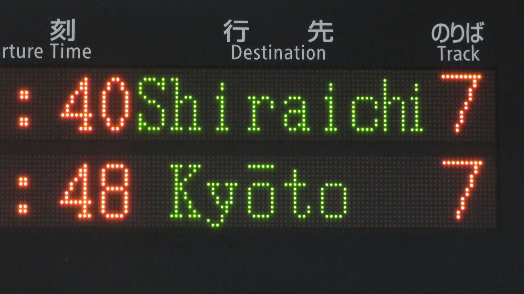 ホームへ上がって、7番のりばの発車標を撮影。