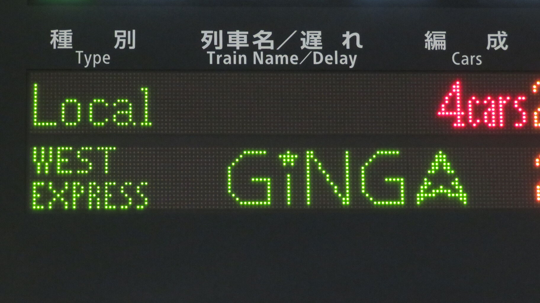 銀河の場合、両数と列車名が交互に表示されます。