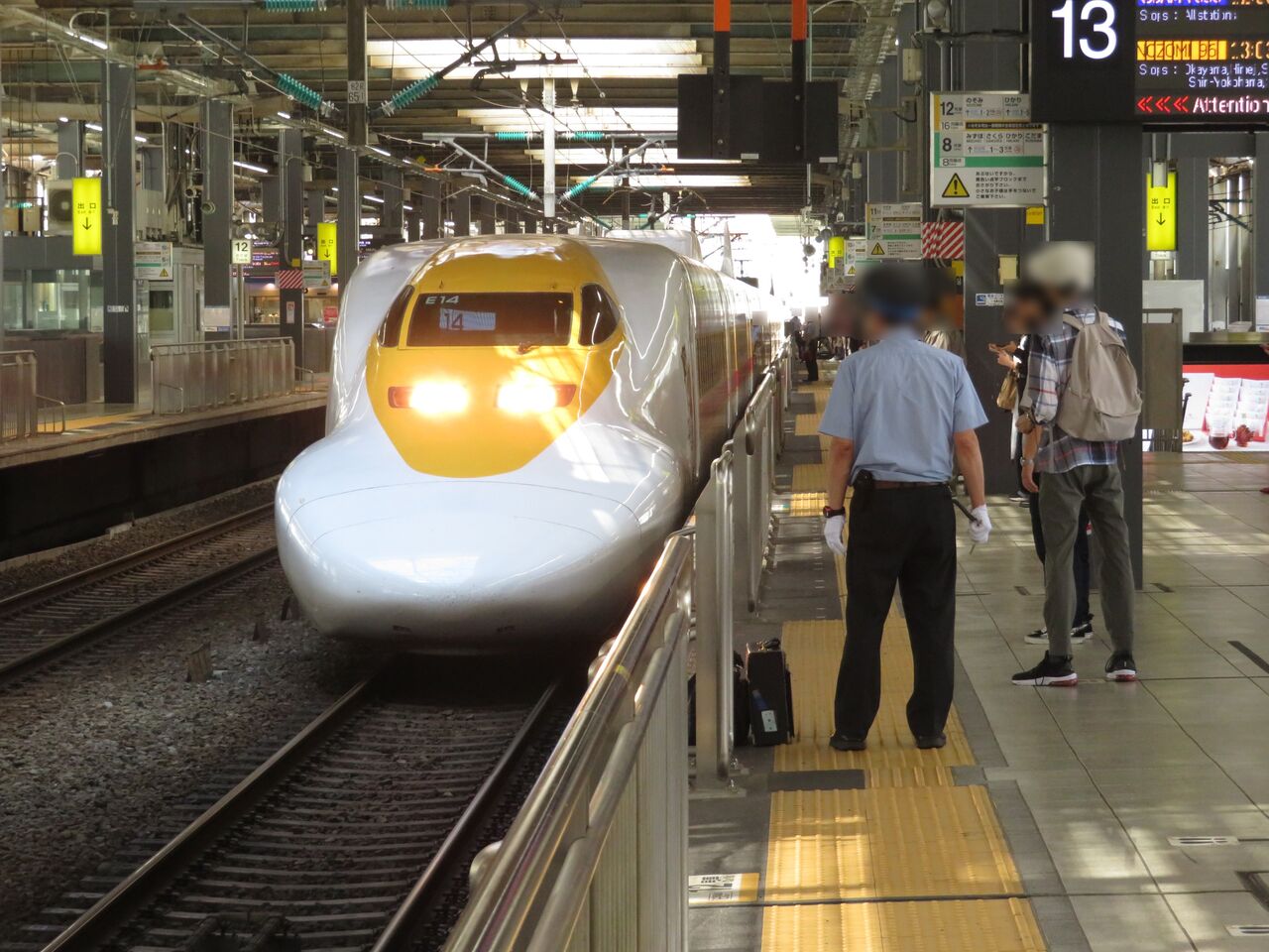 徳山駅から広島駅まで新幹線に乗車し、途中の新岩国駅を通過した際、ホームに黄色い新幹線が停車しているのが見えました。
