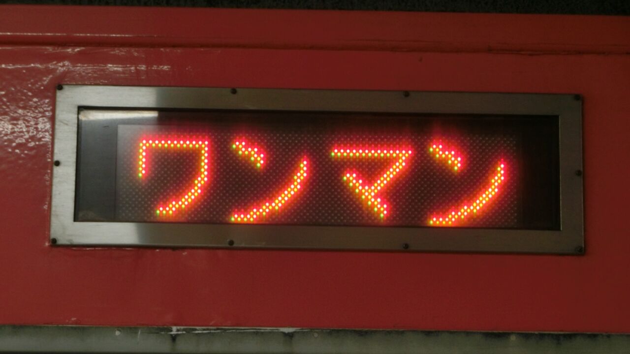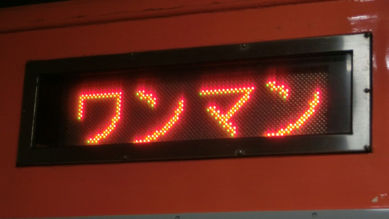 岩徳線の列車はワンマン運転を行っており、行き先と 「ワンマン」 が交互に表示されます。
