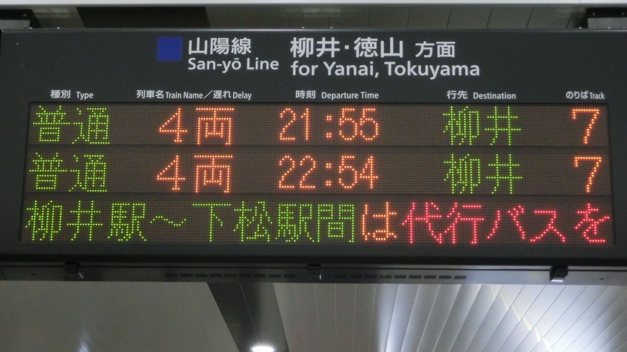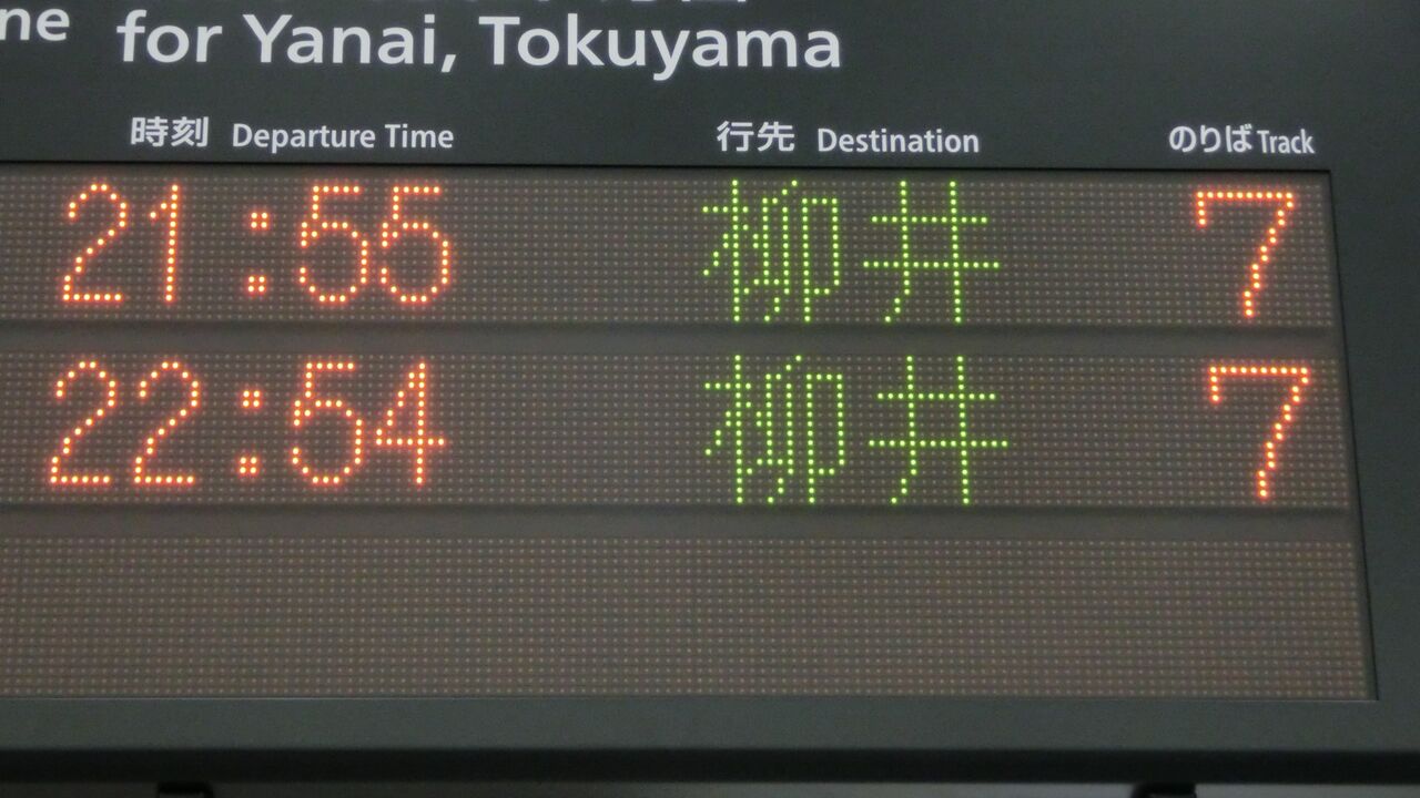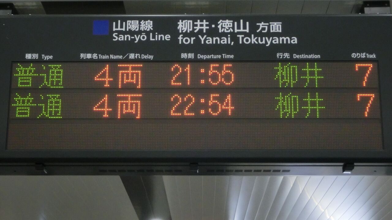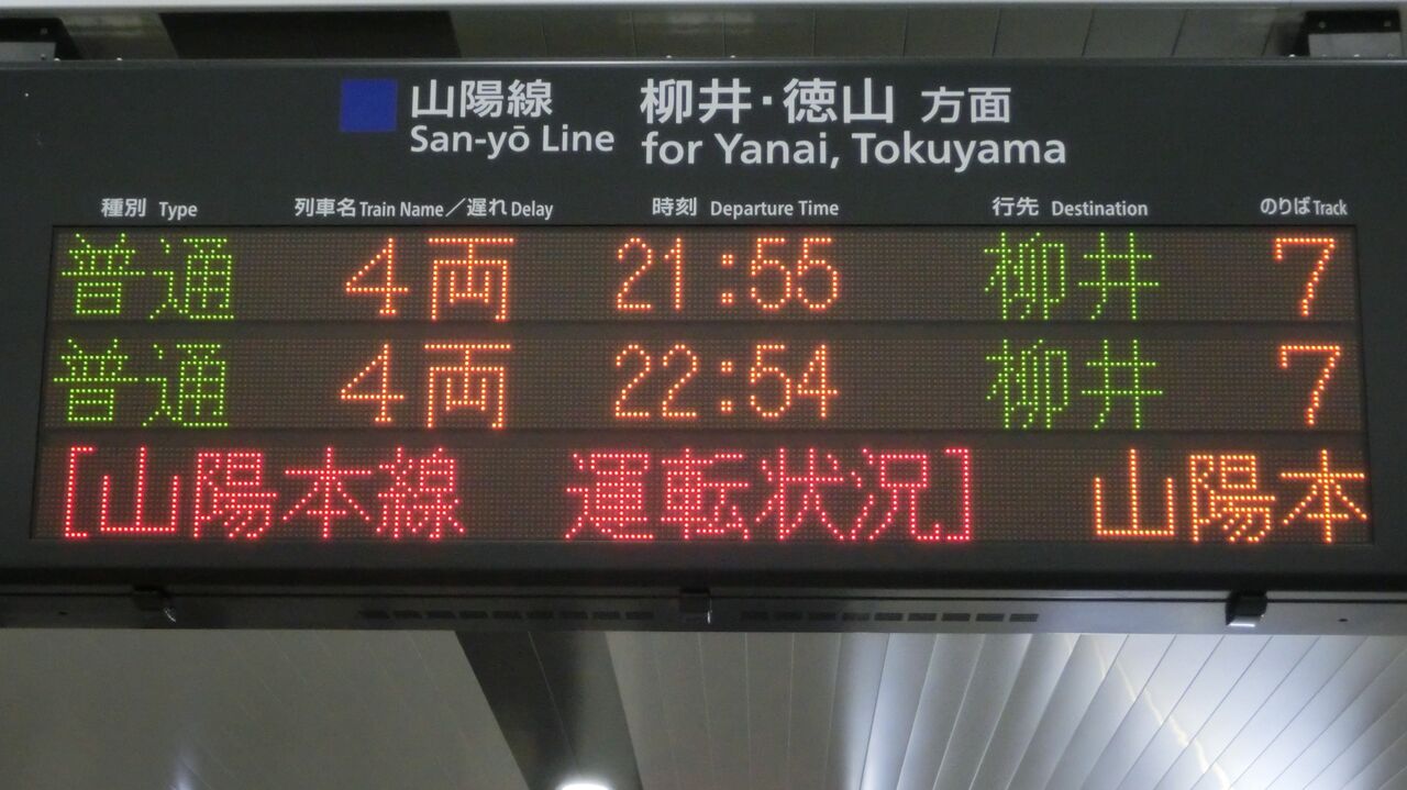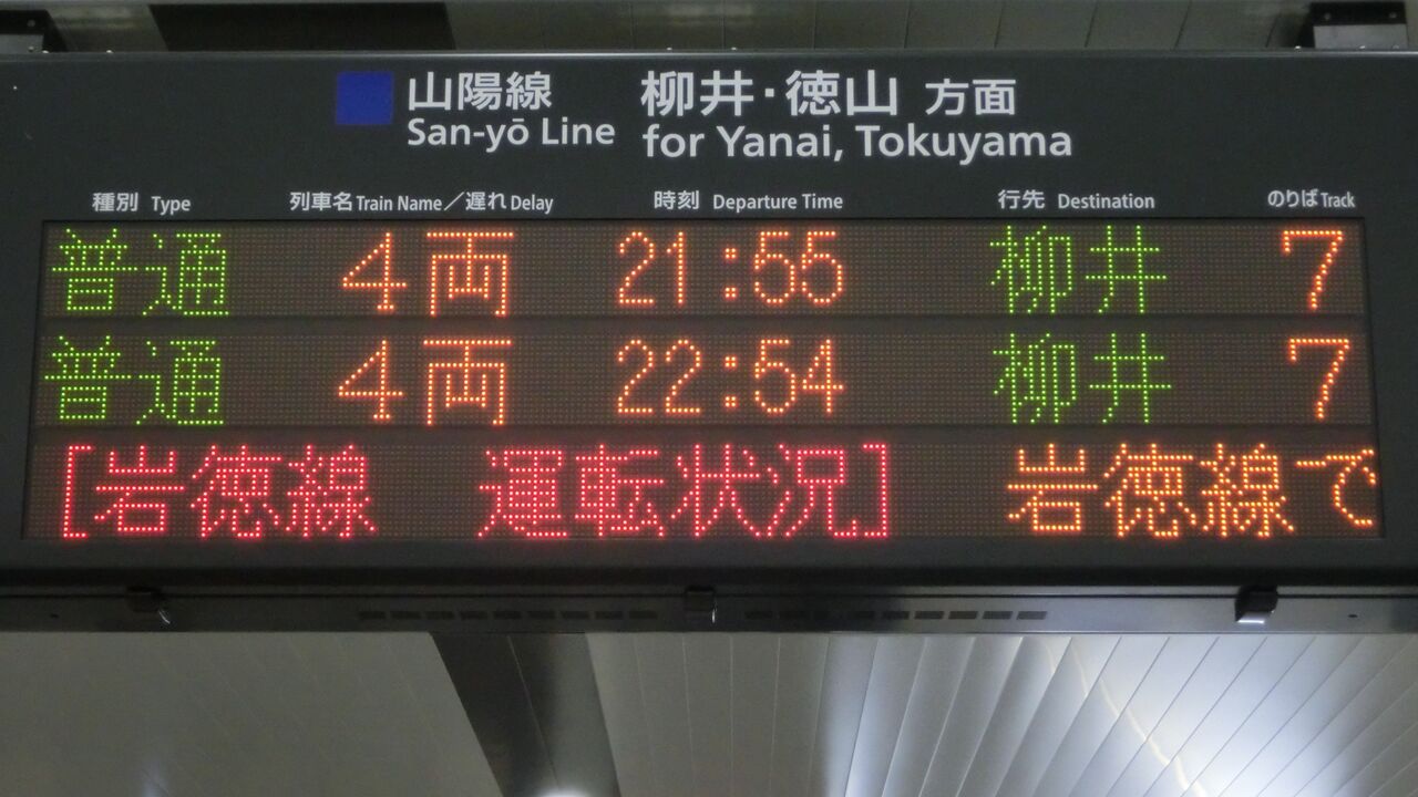 (2021年9月現在、柳井行きは岩国22:57発のみ)