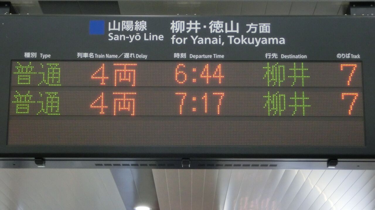 柳井行きが2本表示されていました。