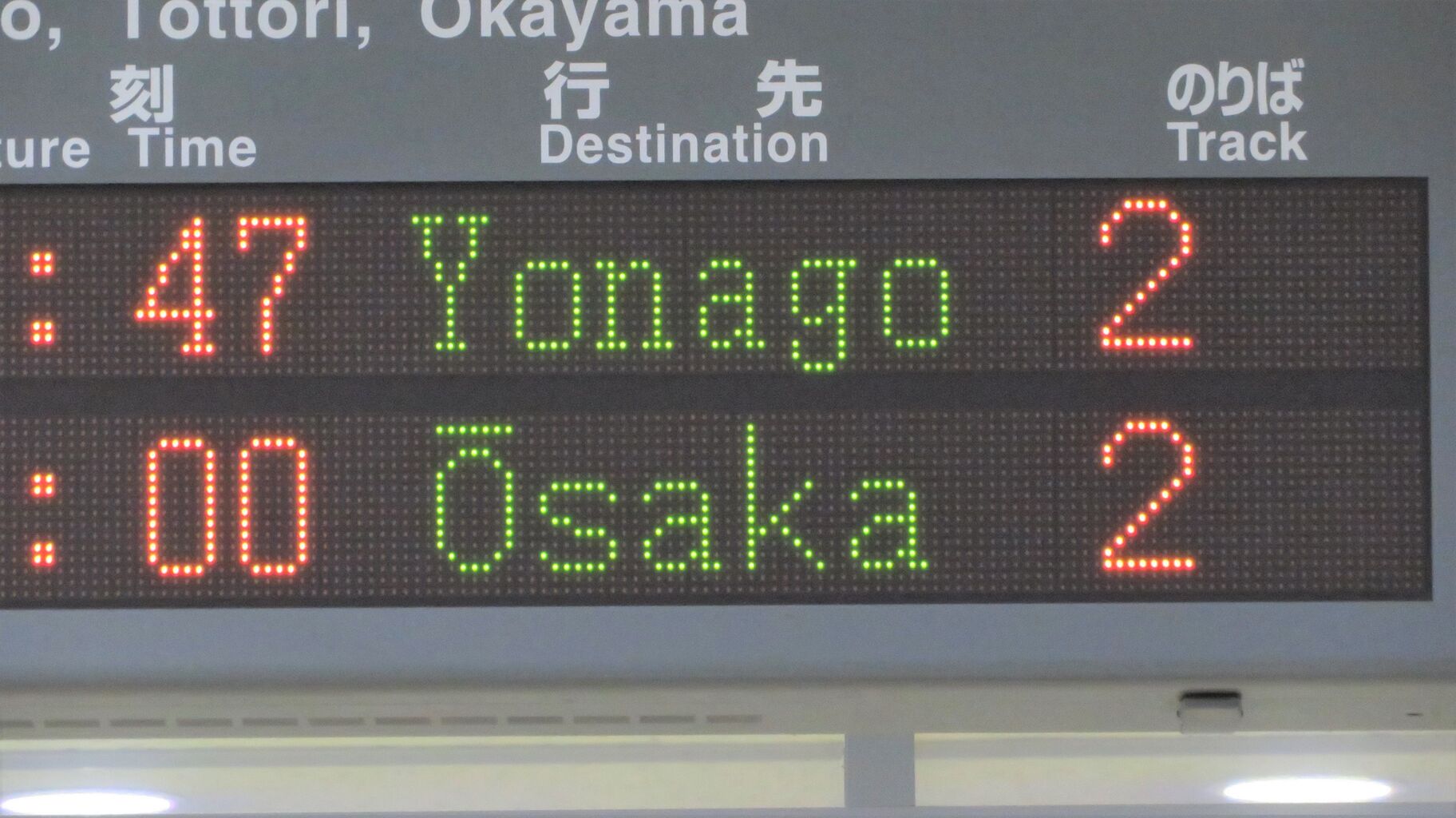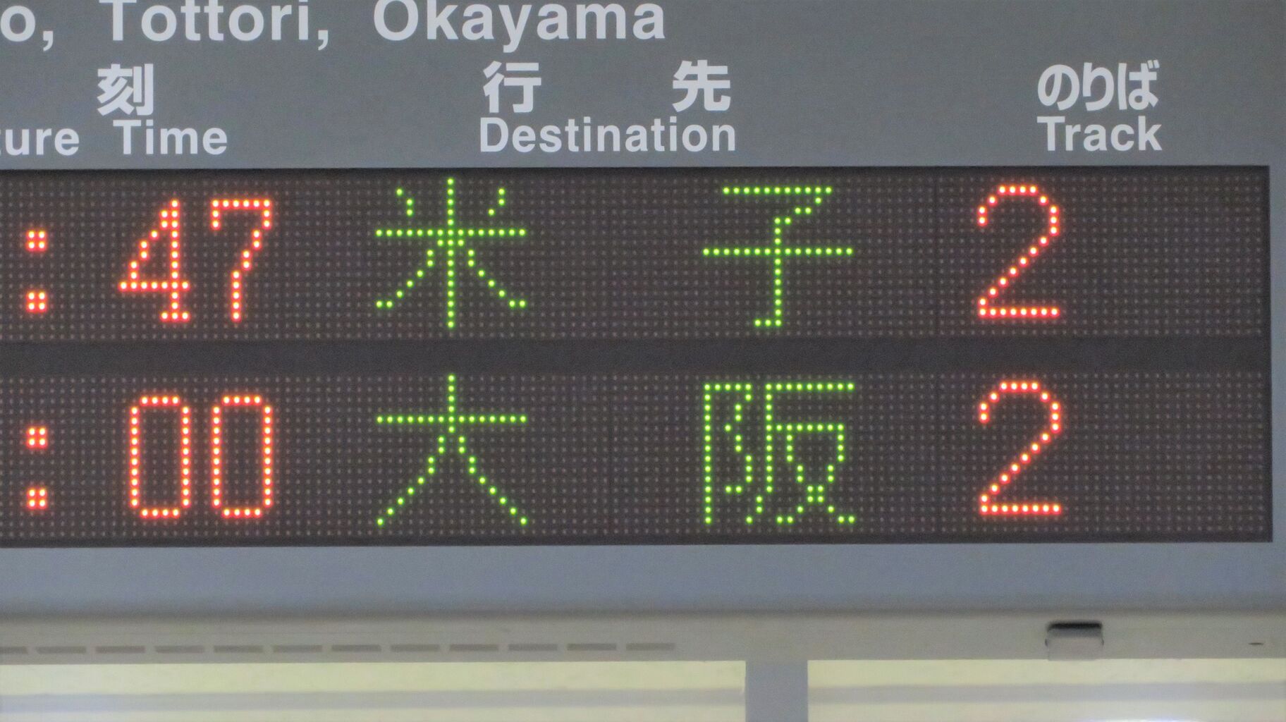 今度は、大阪行きの表示を拡大して撮影。
