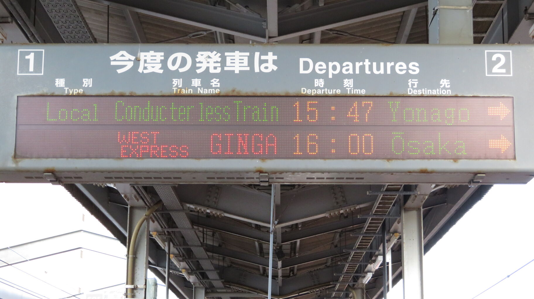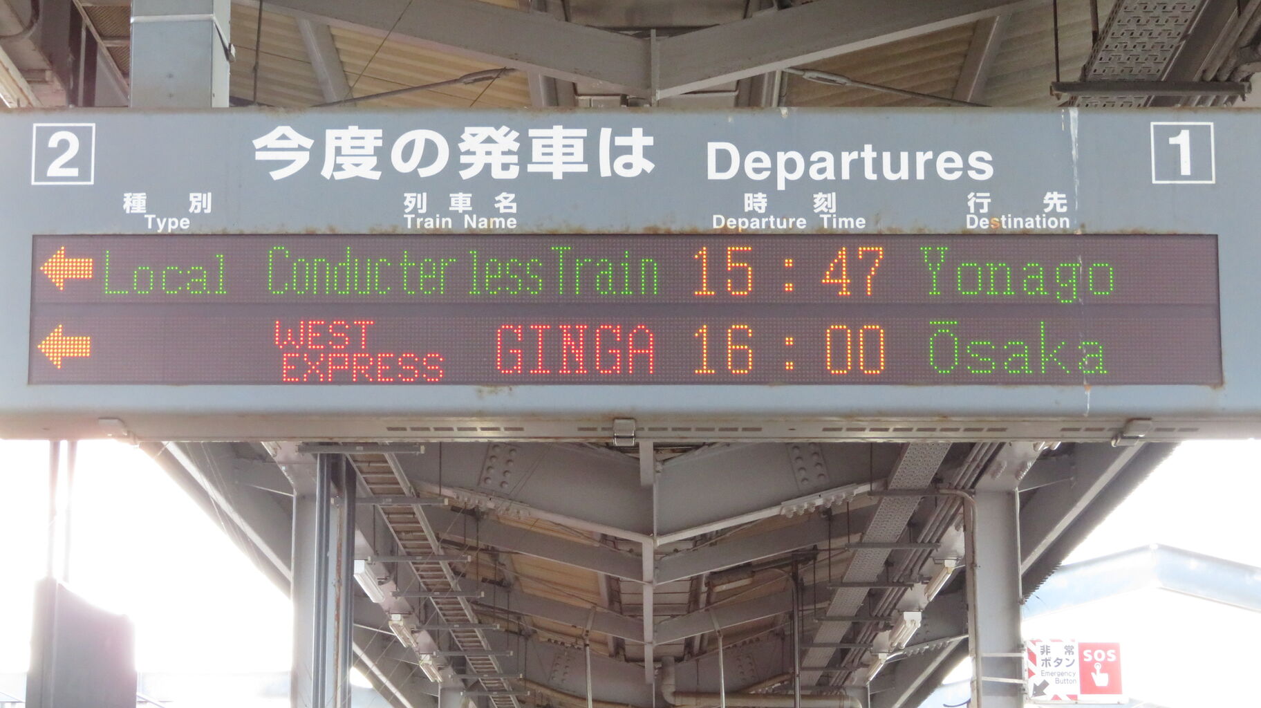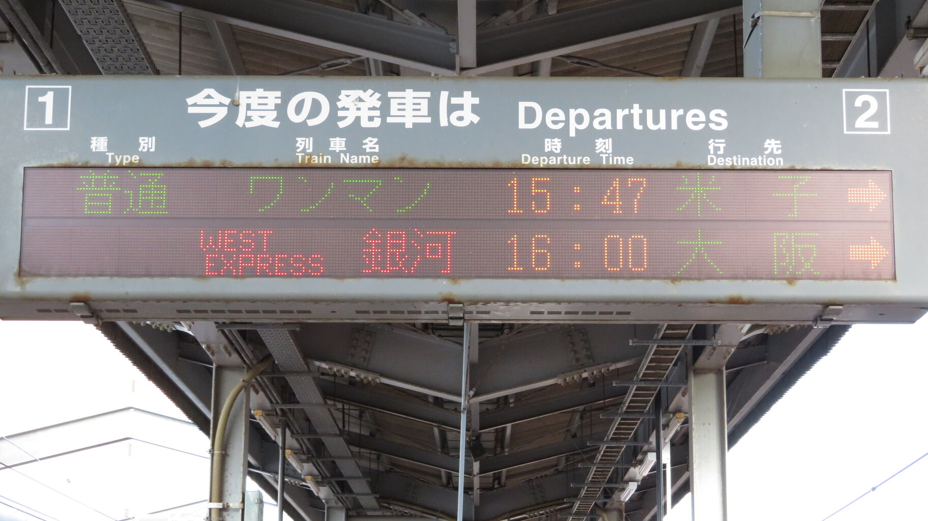 1・2番のりばへ移動し、ホームの東側(米子側)に設置されている発車標を撮影。
