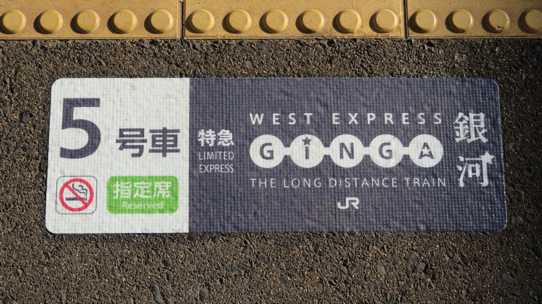 ホーム床には、銀河の乗車位置ステッカーが貼ってあります。