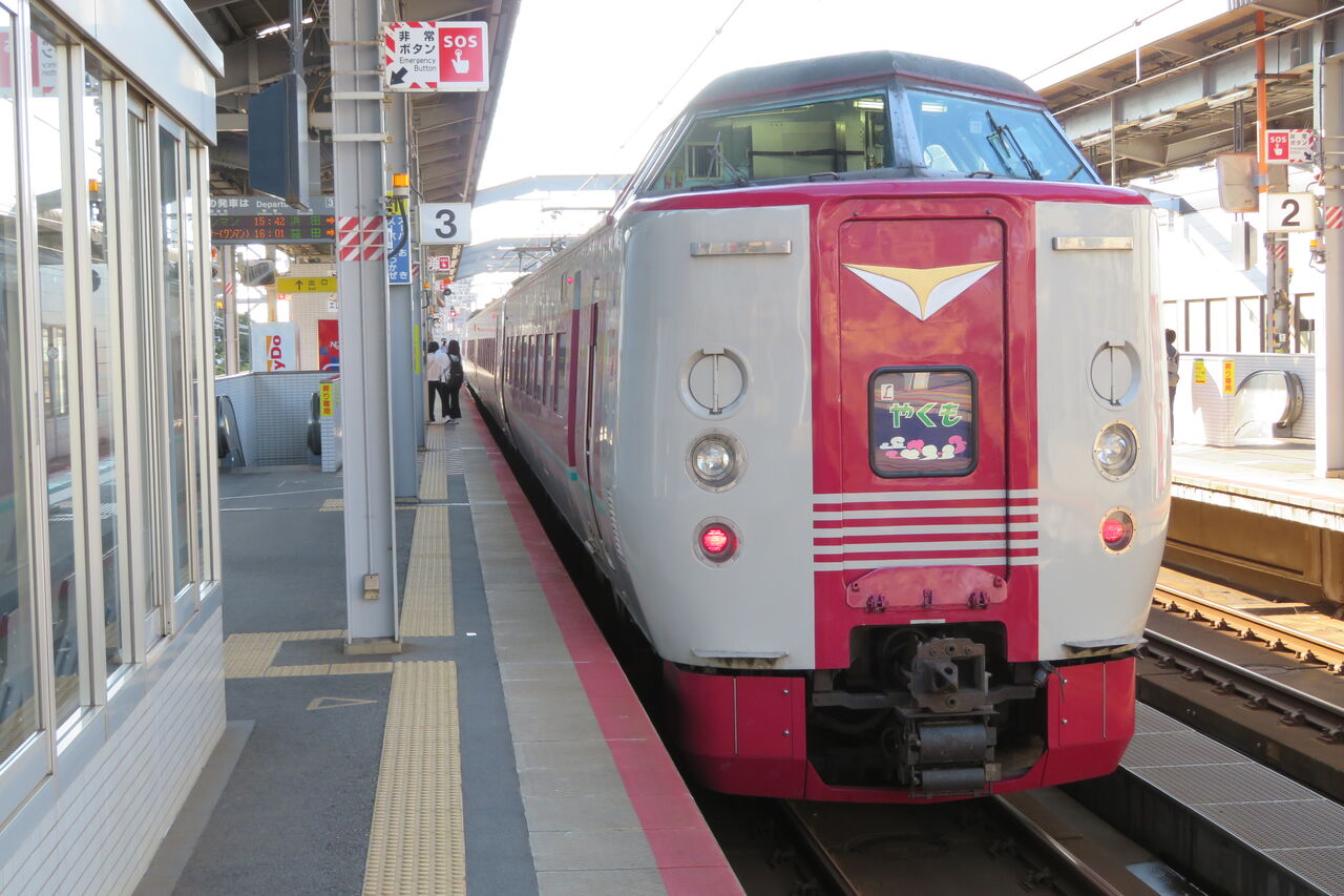 銀河は 出雲市駅を16時ちょうどに発車します。