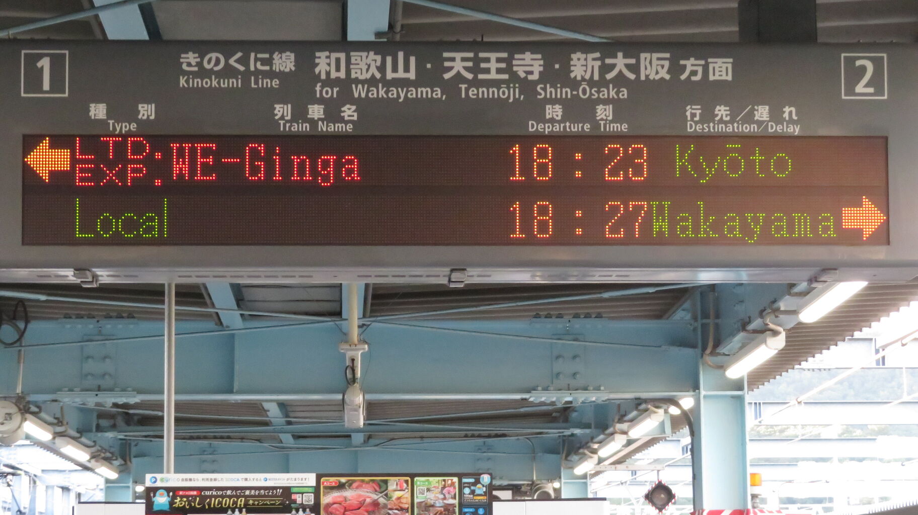 下の段に、「WEST EXPRESS 銀河」 京都行きの表示が出ました!