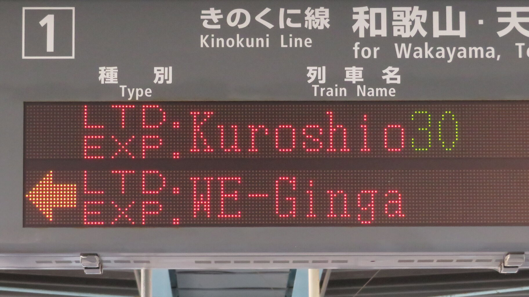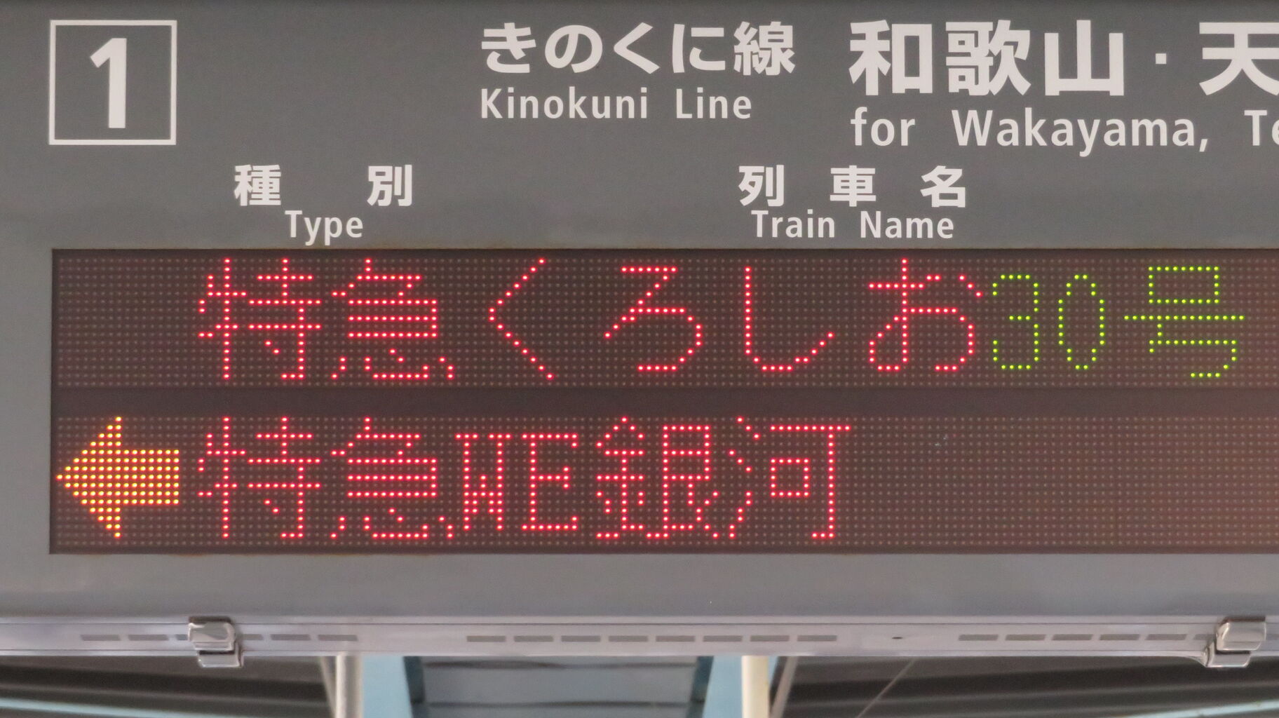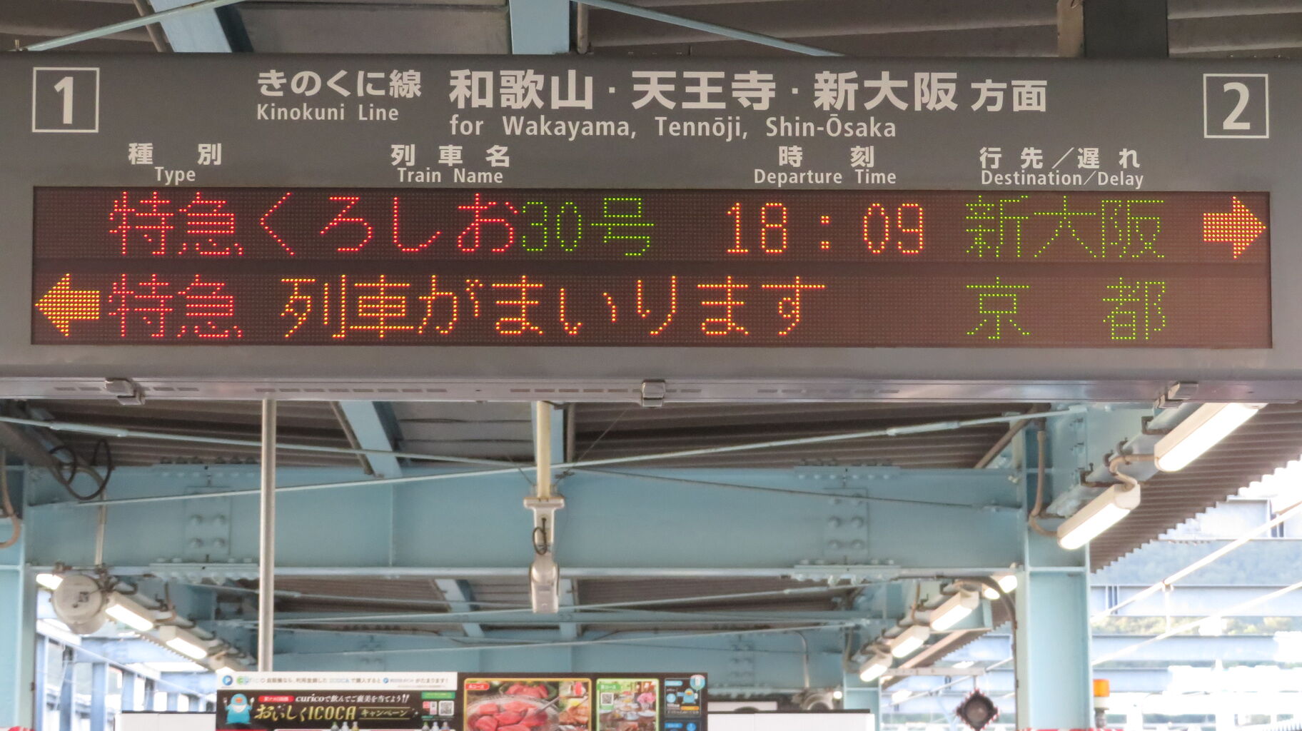今回は 特急くろしおと同様、「列車がまいります」 表示が点滅しています。