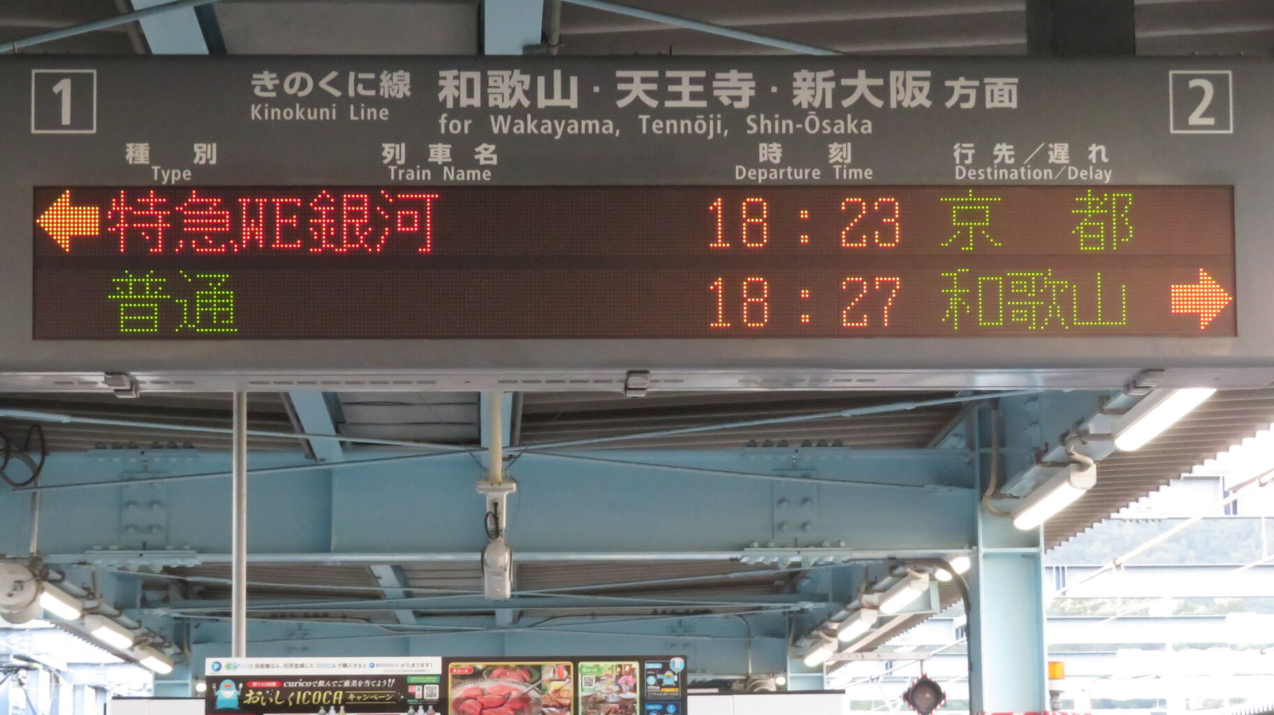 自分がこの駅で銀河を撮るのは 今回で3度目ですが、発車標の表示が毎回異なっています。
