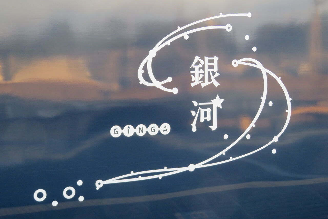 車両側面には、銀河のロゴマークが大きく描かれています。
