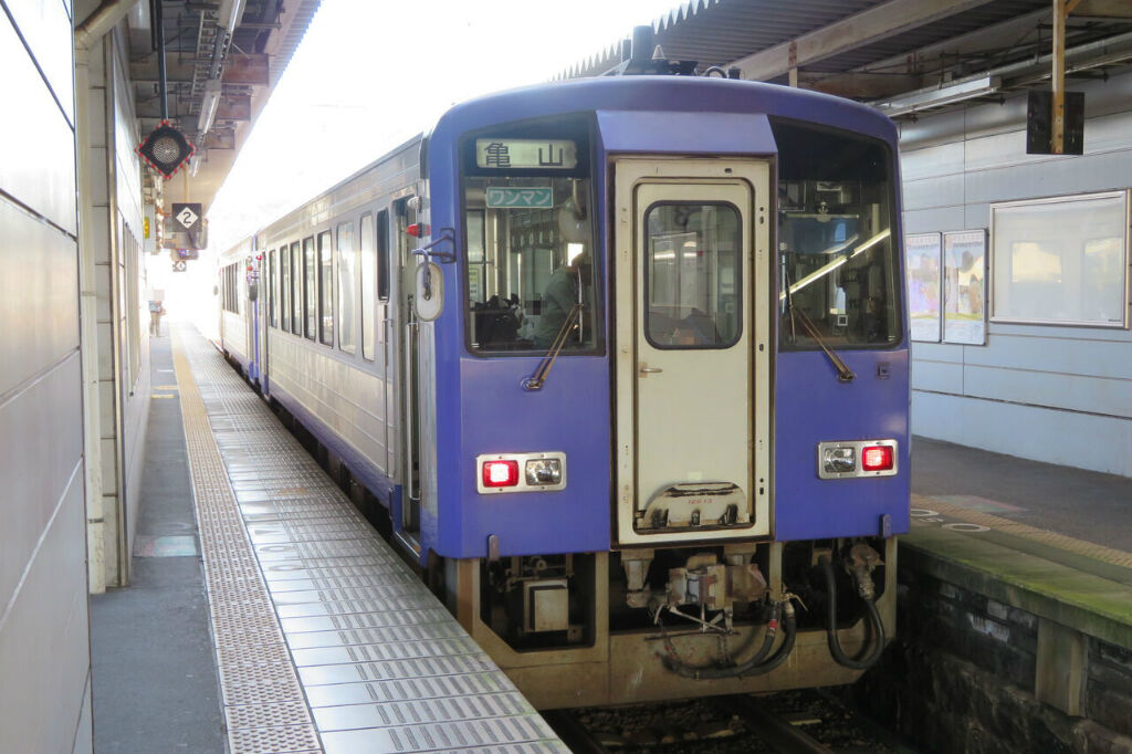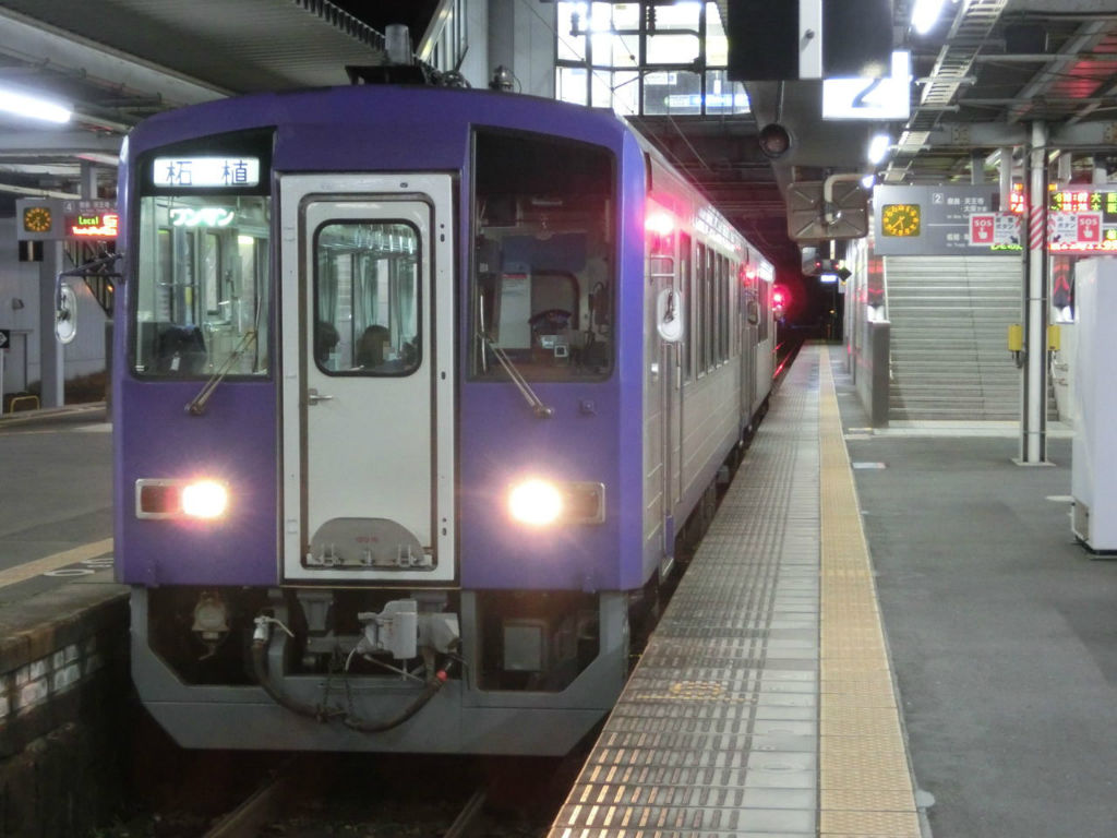 今回乗車した関西線の列車は こちら。 2両編成のキハ120形です。