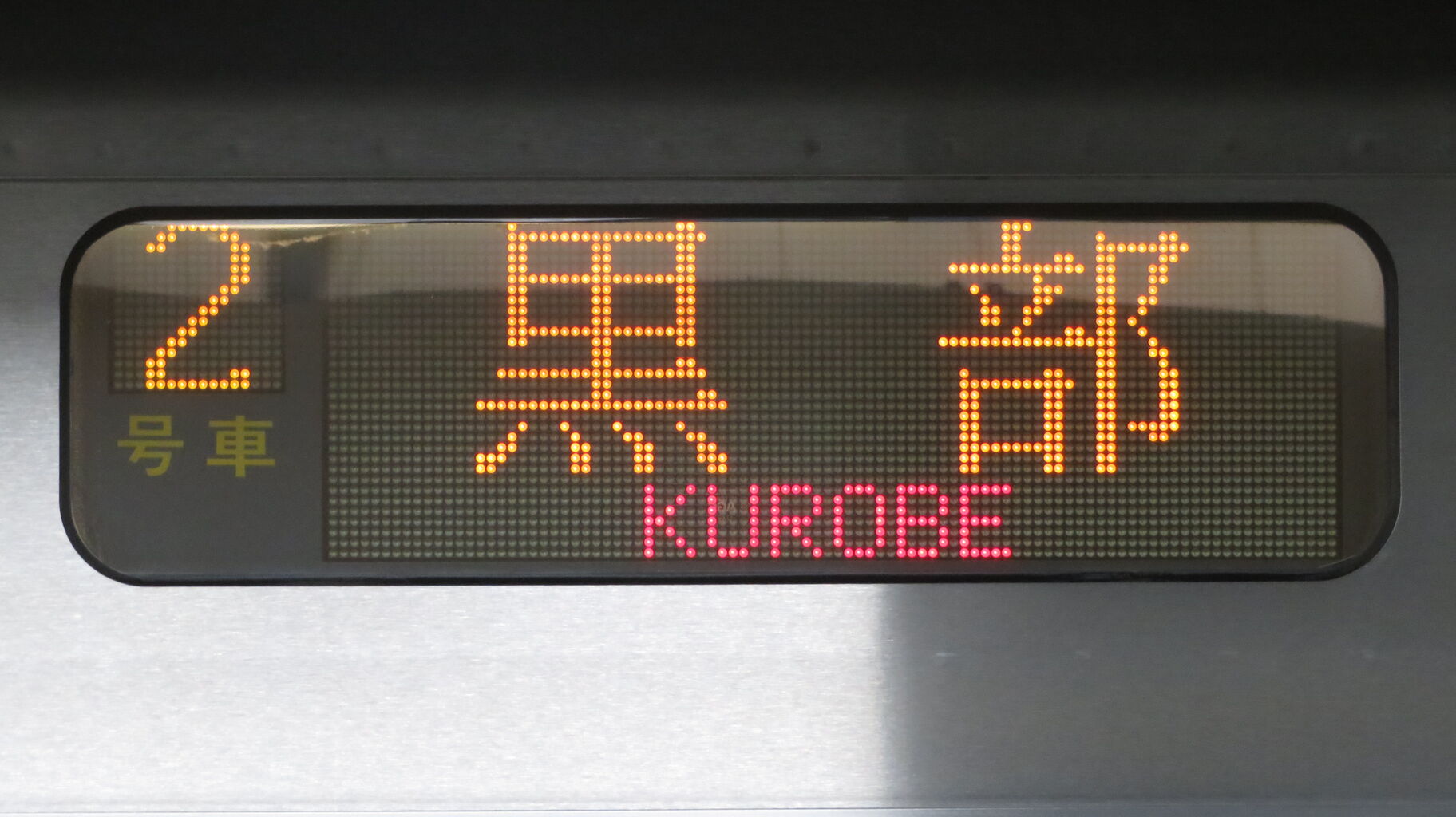 車両全面の行き先表示を拡大して撮影。