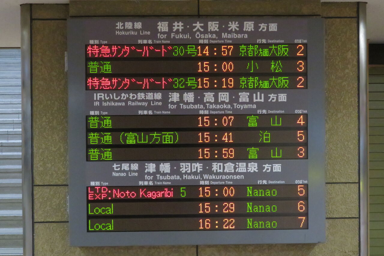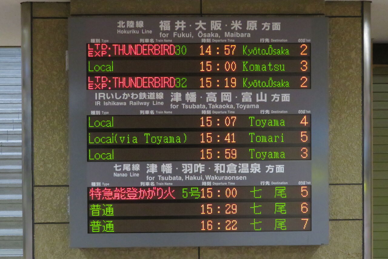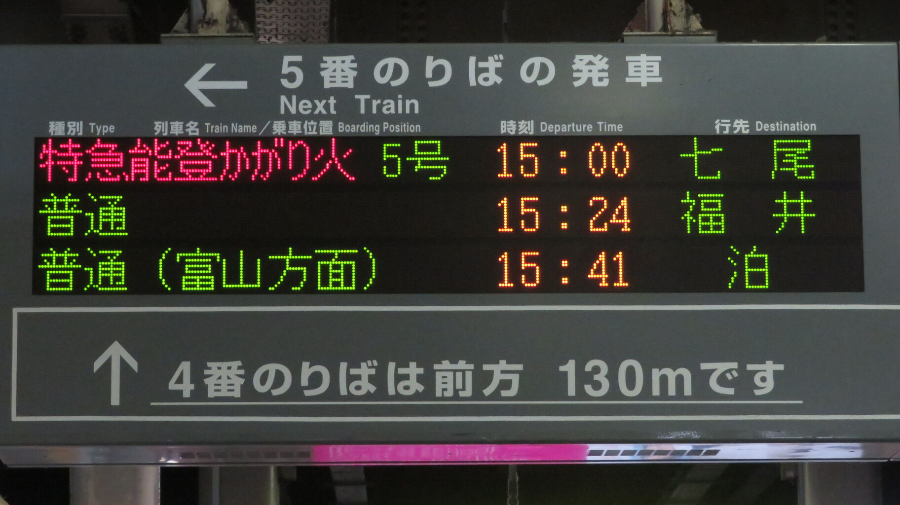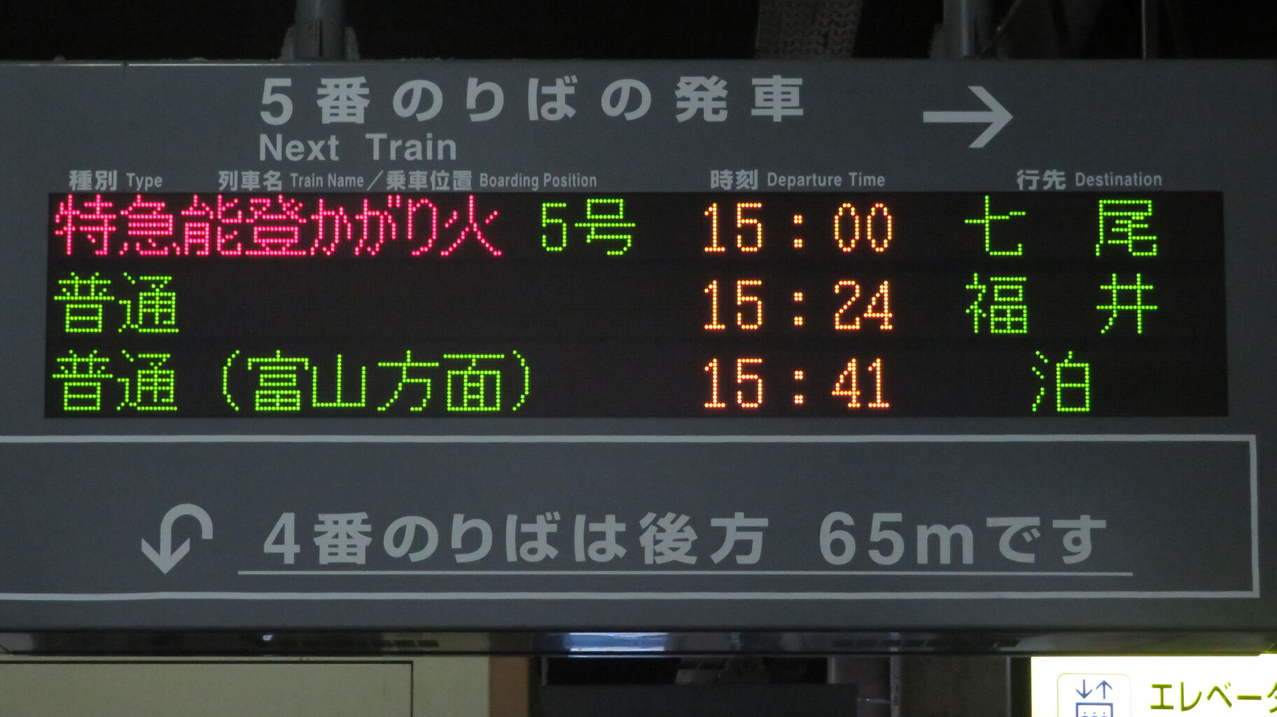能登かがり火の発車案内が一番上の段に表示されている間、停車駅案内などのスクロール表示は一切流れません。