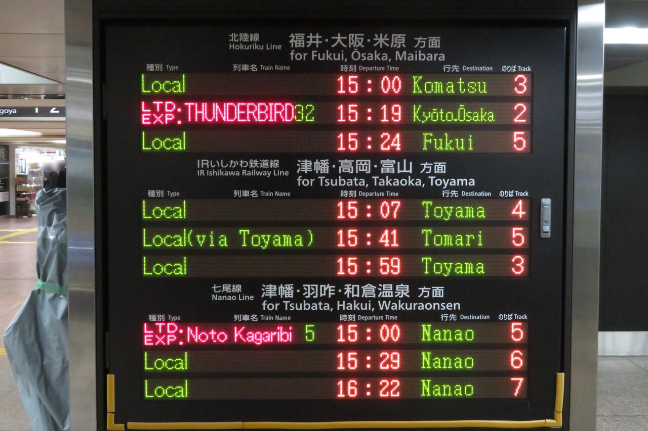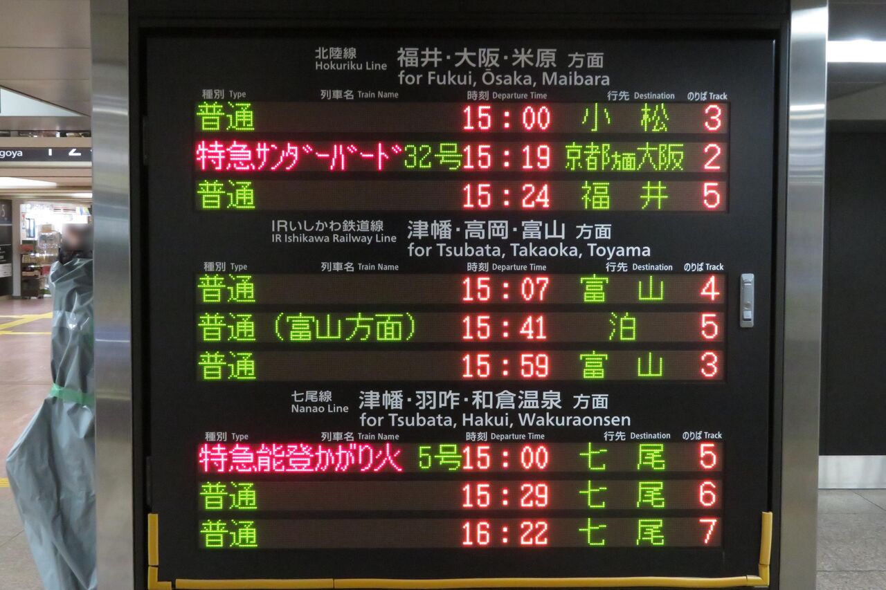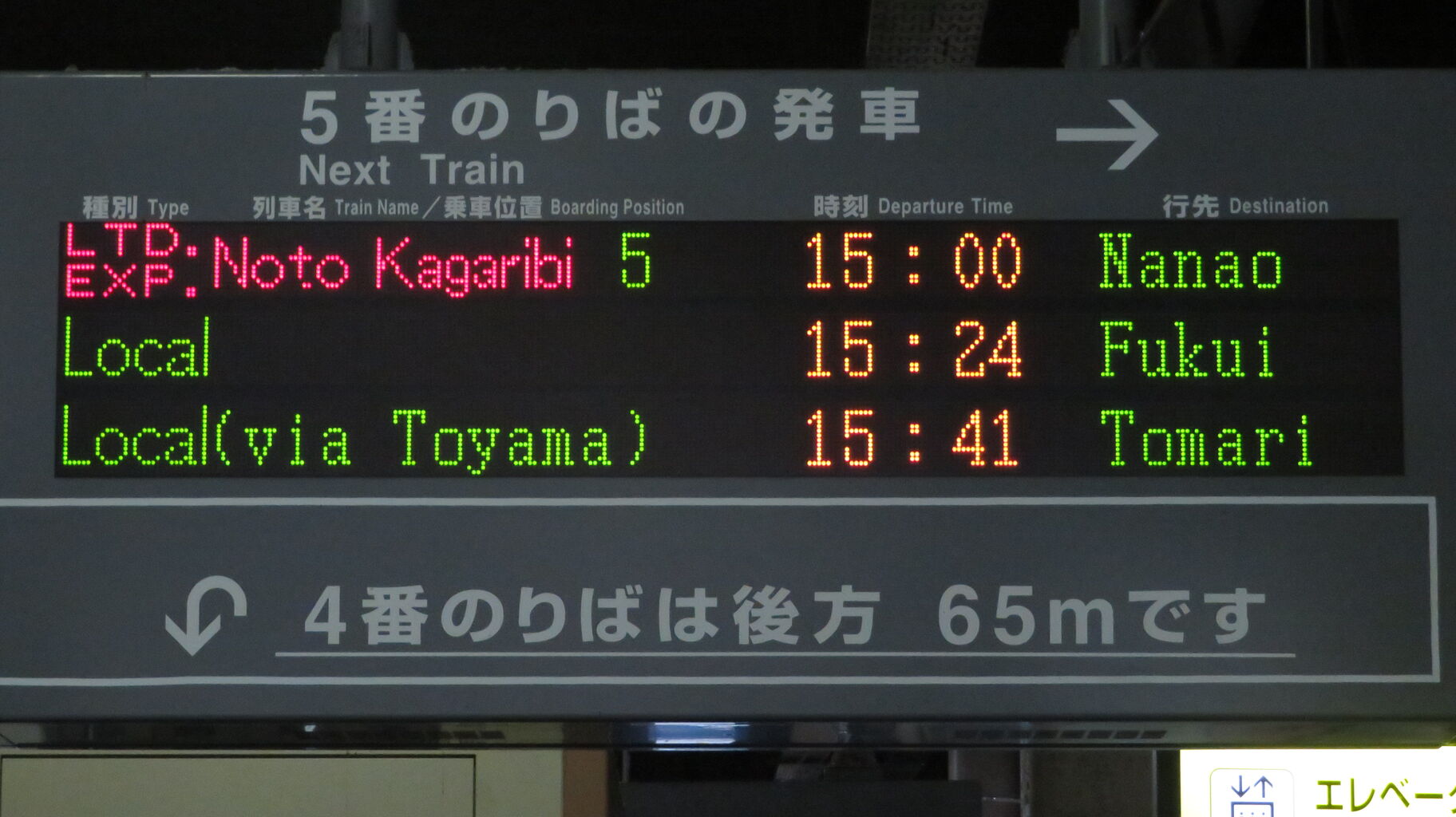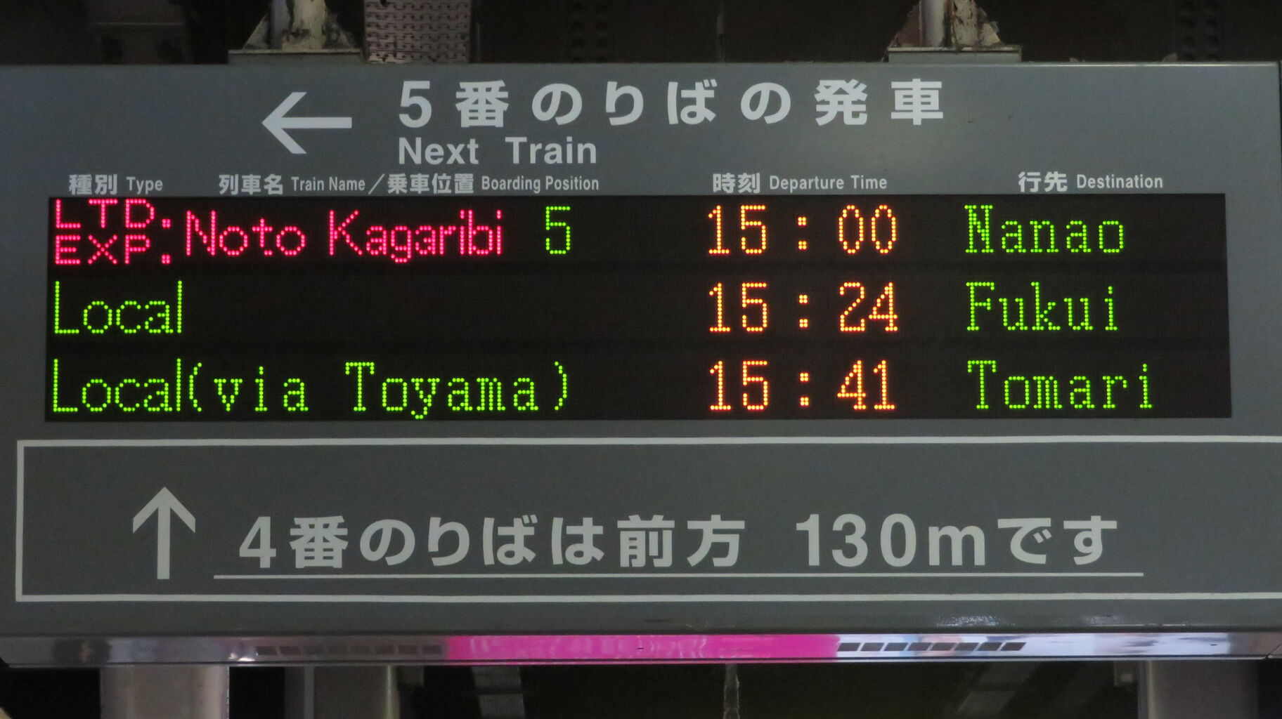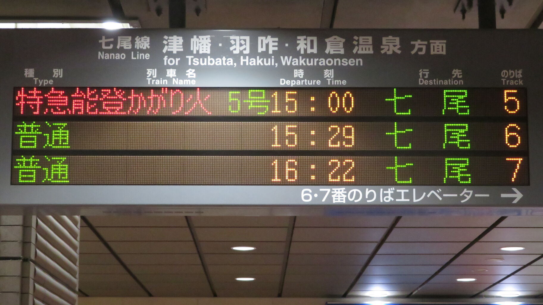 能登かがり火の発車案内が一番上の段に表示されている間、停車駅案内などのスクロール表示は一切流れません。